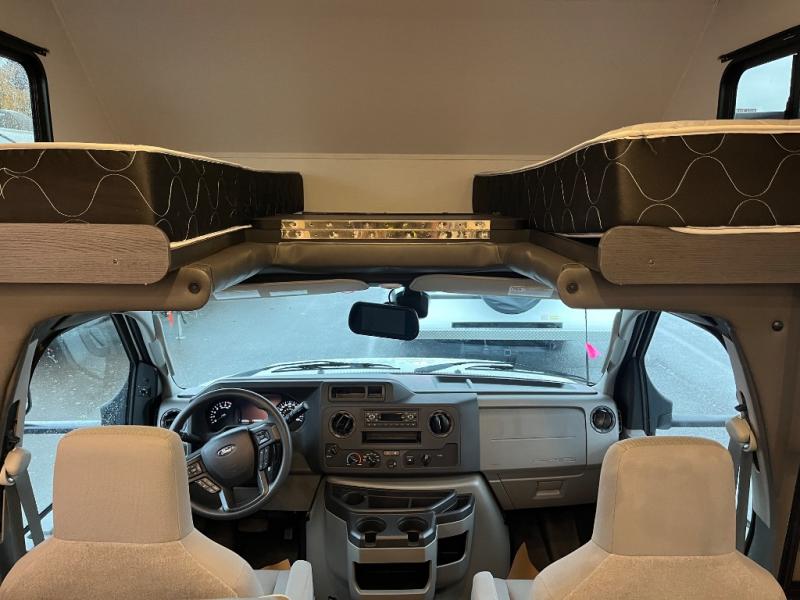 With any Forester LE Class C gas motorhome by Forest River, you will enjoy premier features such as the color back-up camera/side view cameras with a rear view mirror monitor, the Winegard Air 360+ digital antenna, and the 15,000 BTU ceiling ducted, ultra quiet roof air with a heat pump when traveling during the warmer months. The exterior includes aluminum framed laminated sidewalls, gel coat exterior fiberglass, a one-piece fiberglass front cap, and slide room toppers. Some of the interior top features are the Maxx Air multi-speed power fan with a cover in the kitchen, the overhead bunk ladder, the high pressure oxygen infused shower head, and the blackout roller shades for a good night's sleep. Make your selection today!