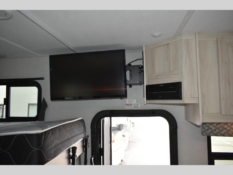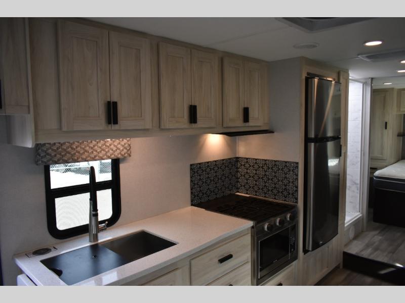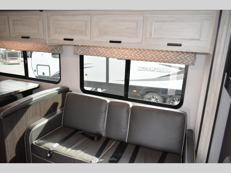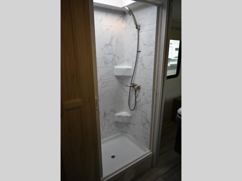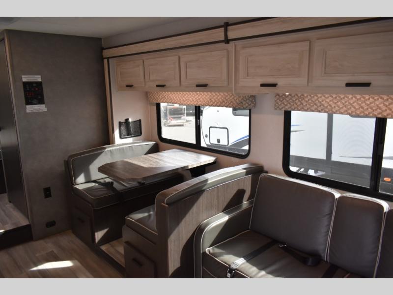 With any Forester LE Class C gas motorhome by Forest River, you will enjoy premier features such as the color back-up camera/side view cameras with a rear view mirror monitor, the Winegard Air 360+ digital antenna, and the 15,000 BTU ceiling ducted, ultra quiet roof air with a heat pump when traveling during the warmer months. The exterior includes aluminum framed laminated sidewalls, gel coat exterior fiberglass, a one-piece fiberglass front cap, and slide room toppers. Some of the interior top features are the Maxx Air multi-speed power fan with a cover in the kitchen, the overhead bunk ladder, the high pressure oxygen infused shower head, and the blackout roller shades for a good night's sleep. Make your selection today!