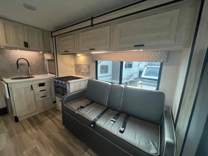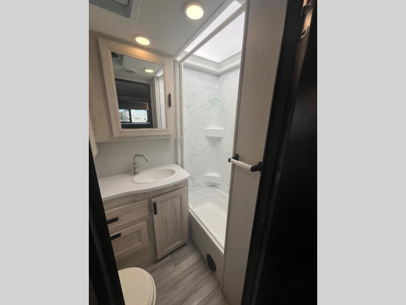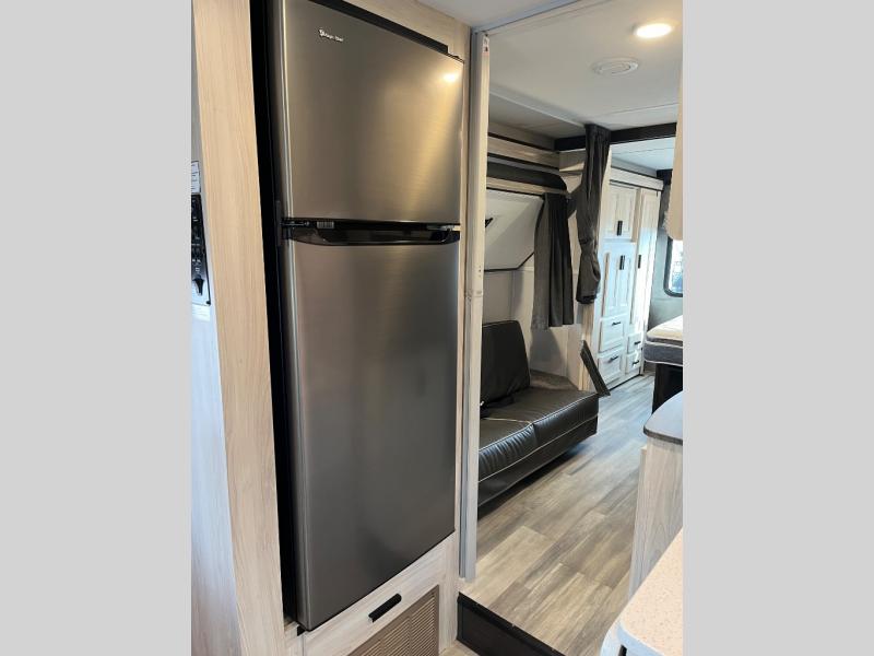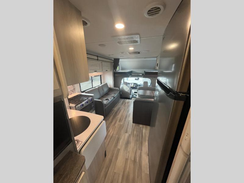 With any Forester LE Class C gas motorhome by Forest River, you will enjoy premier features such as the color back-up camera/side view cameras with a rear view mirror monitor, the Winegard Air 360+ digital antenna, and the 15,000 BTU ceiling ducted, ultra quiet roof air with a heat pump when traveling during the warmer months. The exterior includes aluminum framed laminated sidewalls, gel coat exterior fiberglass, a one-piece fiberglass front cap, and slide room toppers. Some of the interior top features are the Maxx Air multi-speed power fan with a cover in the kitchen, the overhead bunk ladder, the high pressure oxygen infused shower head, and the blackout roller shades for a good night's sleep. Make your selection today!