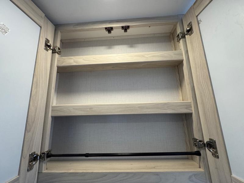 When you are ready to enjoy camping and traveling, take this coach with you! There are leather, swivel captain's seats to ensure your comfort, plus a full bathroom just like home. Once at your destination, easily set up the large slide and power awning, and relax on the U-shaped dinette or outside under the awning. You might even like to add the optional exterior TV. Back inside, you can make meals using the two-burner range and the convection microwave, and the 10.7 cu. ft. 12V refrigerator will hold all your drinks and cold items. There is a flip-up counter extension for more prep space, and a pantry for your dry goods. At night, sleep on a queen bed while you watch the 12V TV in the bedroom, and your friends can sleep on the cab over bunk and the U-shaped dinette while watching the living area 12V TV.