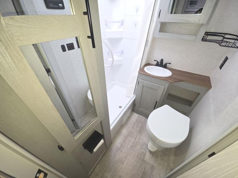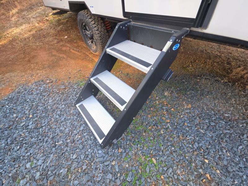 With any IBEX travel trailer or toy hauler by Forest River, the interior offers stainless steel appliances for style, seamless countertops for durability and easy care, a largest-in-class refrigerator for more cold storage, and a central vacuum system to easily clean up after a fun, messy day. The PVC roof, the Azdel construction, and the Cold Weather package with a heated and enclosed underbelly, tank pad heaters and an enclosed termination system provides solid construction plus allows you to travel during any season. And the all terrain tires and increased ground clearance allow you to find the perfect spot to setup camp!