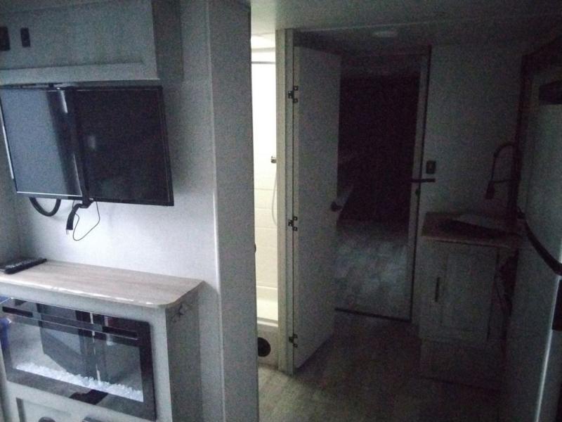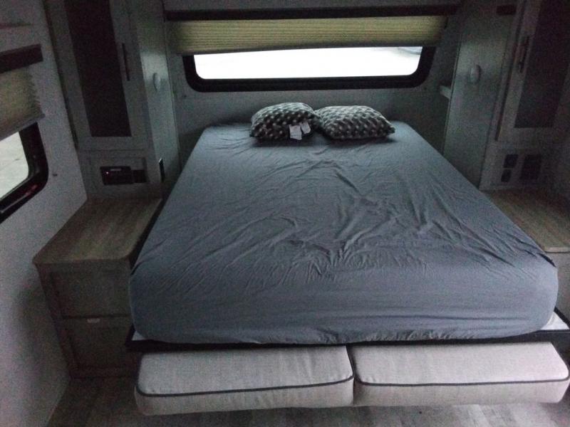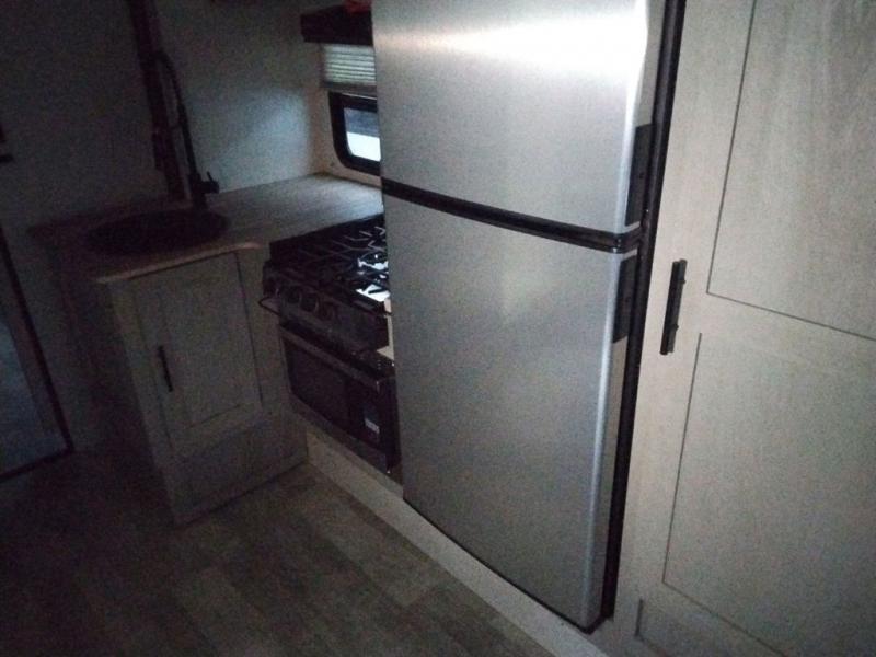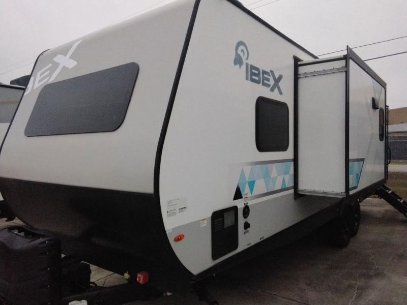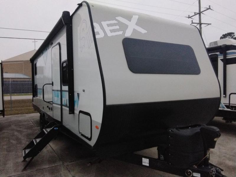 With any IBEX travel trailer or toy hauler by Forest River, the interior offers stainless steel appliances for style, seamless countertops for durability and easy care, and a largest-in-class refrigerator for more cold storage. The Azdel construction and PVC roof will help extend the life of your unit, and the all terrain tires and increased ground clearance means you can go more places. A JBL wireless Bluetooth audio system also comes standard so you can listen to your favorite tunes, along with Rhino-Rack RTV tracks to keep your gear secure!