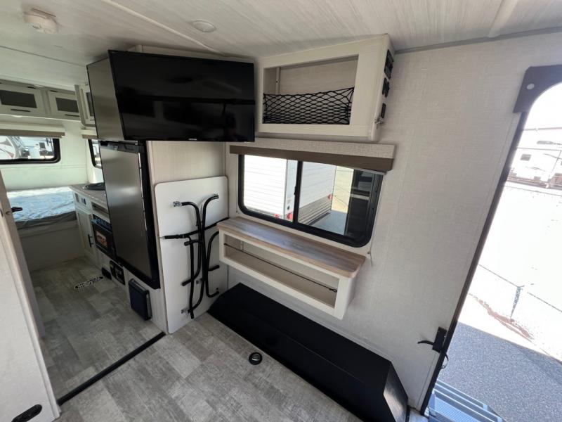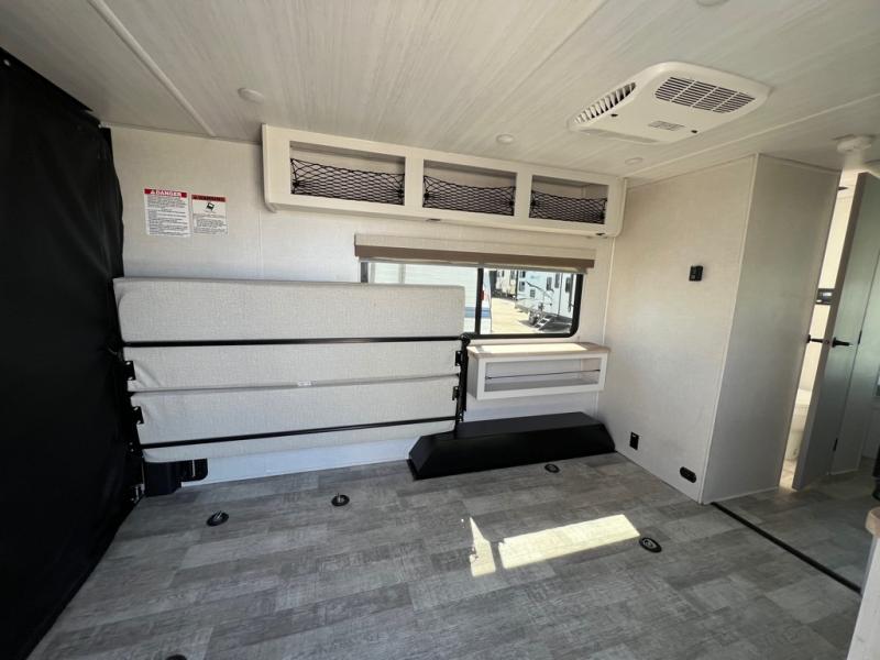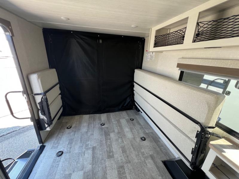 You'll be all set for your next adventure with this No Boundaries toy hauler! Not only do you have plenty of space to store your four-wheelers and dirt bikes in the 10' 7" garage, but you also have space to sleep on a queen-size bed, space to clean up with the full bathroom, space to create meals with the kitchen amenities, and space to relax with the flip-up sofa. If you want more space to spread out while you relax, just head outside to your camp chairs and pull out the 16' awning. There is also storage space on this trailer with the pantry, refrigerator, overhead cabinets, and exterior pass-through storage. Add the optional Un-Plugged package to take your camping experience to a whole new level. Some features included in this package are 600 watts of solar, premium Lithium-ion batteries, a 3,000 watt inverter charger, a high-efficiency A/C, and more.