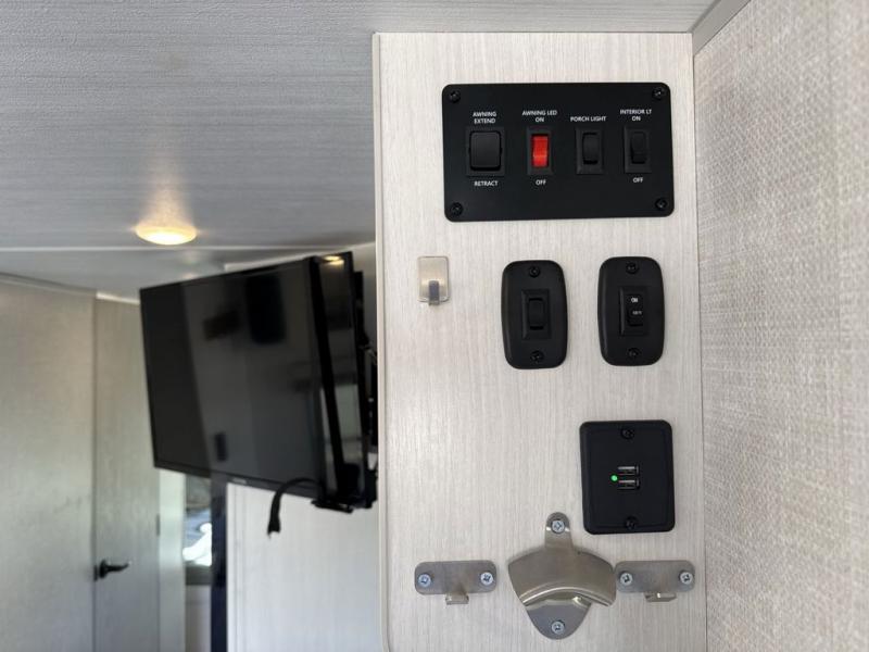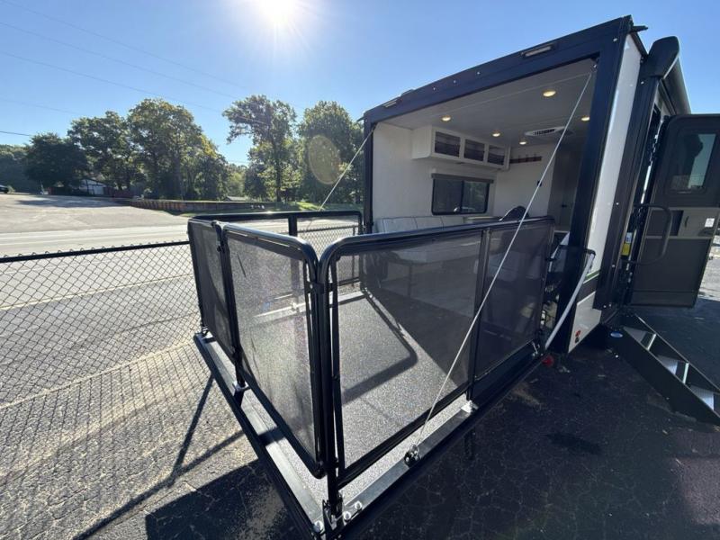 You'll be all set for your next adventure with this No Boundaries toy hauler! Not only do you have plenty of space to store your four-wheelers and dirt bikes in the 10' 7" garage, but you also have space to sleep on a queen-size bed, space to clean up with the full bathroom, space to create meals with the kitchen amenities, and space to relax with the flip-up sofa. If you want more space to spread out while you relax, just head outside to your camp chairs and pull out the 16' awning. There is also storage space on this trailer with the pantry, refrigerator, overhead cabinets, and exterior pass-through storage. Add the optional Un-Plugged package to take your camping experience to a whole new level. Some features included in this package are 600 watts of solar, premium Lithium-ion batteries, a 3,000 watt inverter charger, a high-efficiency A/C, and more.