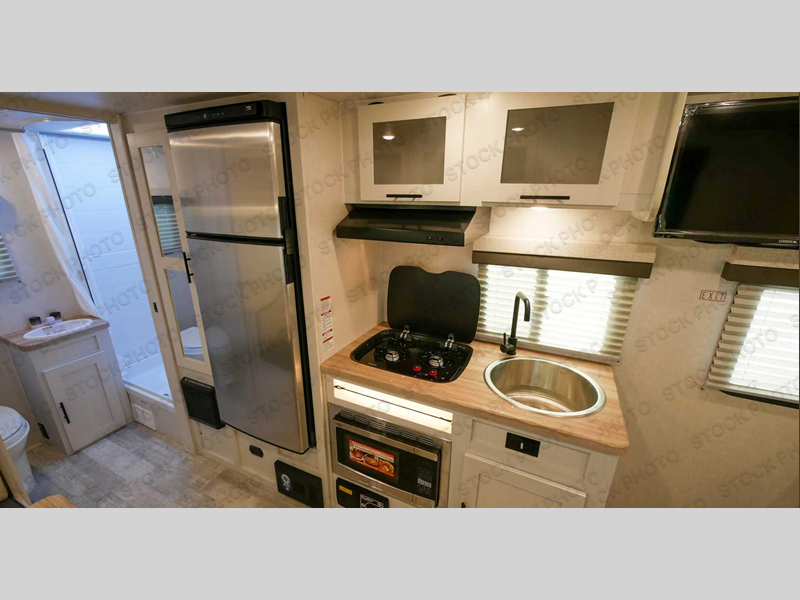 Take this No Boundaries travel trailer out for a no-stress weekend! You'll have a rear bathroom complete with a shower, toilet, vanity, and wardrobe, and the kitchen comes with a pantry, refrigerator, two-burner recessed cooktop, and sink to help you stay on top of the daily meals. With an entertainment center, you'll have something to do when you're forced to stay inside, and the booth dinette will be the perfect place to dine at. You'll also have a JBL FLIP portable Bluetooth speaker that you can use to listen to some music. Add the optional Un-Plugged package to take your camping experience to a whole new level. Some features included in this package are 600 watts of solar, premium Lithium-ion batteries, a 3,000 watt inverter charger, a high-efficiency A/C, and more.