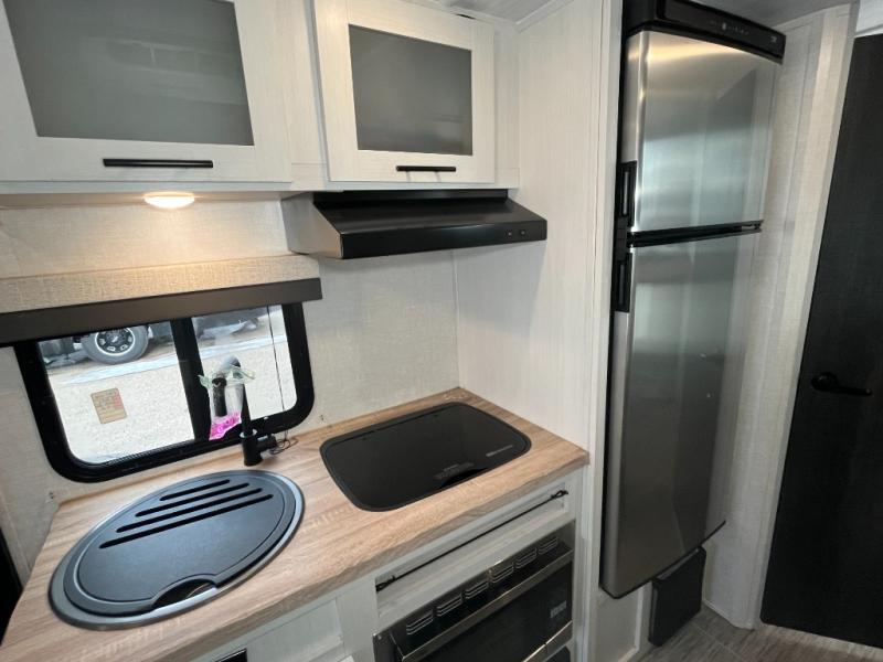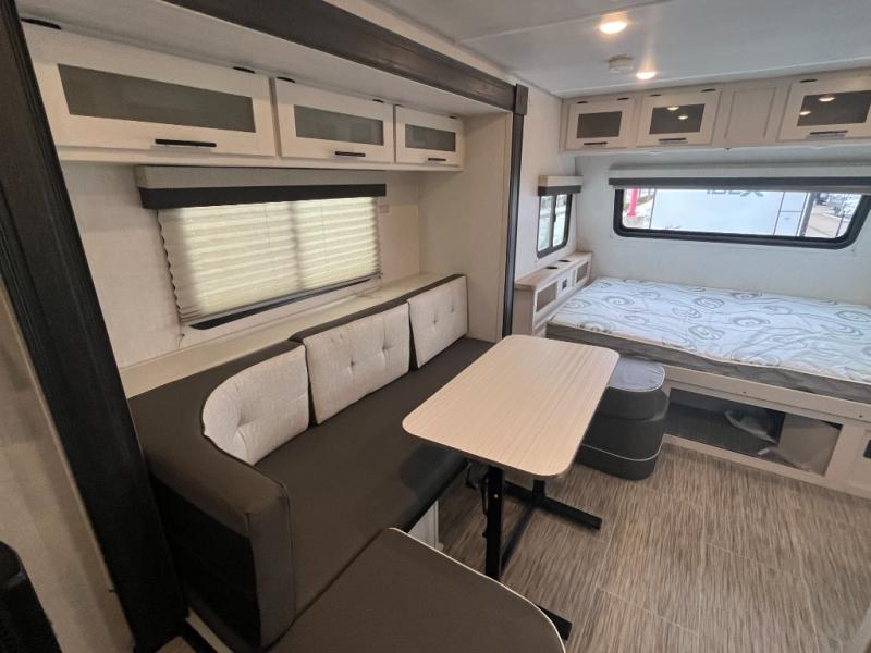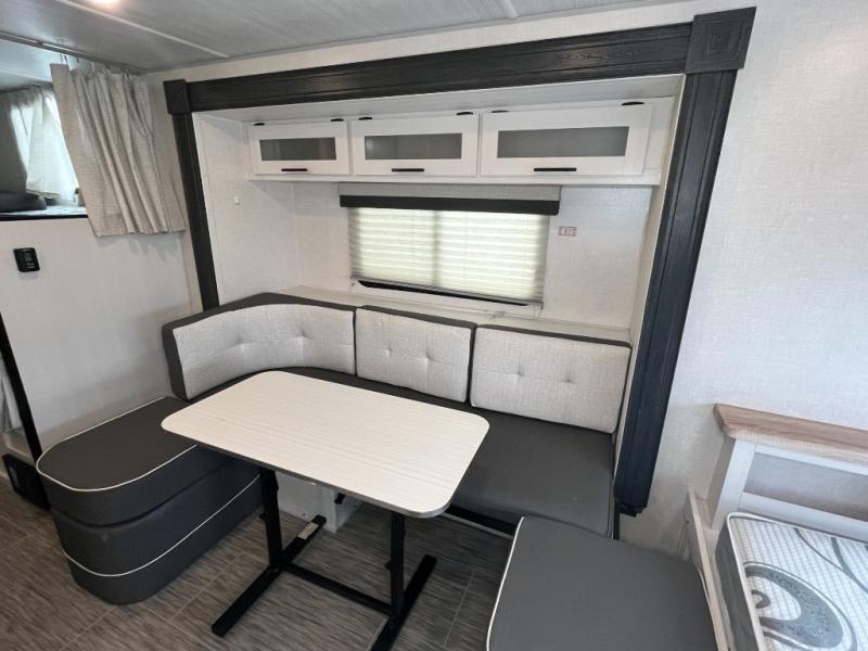 This No Boundaries travel trailer will make your life easier with its bunk beds, chaise dinette, and queen-size bed. Now you can bring along your favorite people without worrying where they will sleep at night. The single slide gives you more space for staying inside and spending time together, and there is an entertainment center that you can use while you're in there. This trailer also has great storage with the bathroom closet, kitchen refrigerator, overhead cabinets, and exterior pass-through storage. You'll also have a 14' power awning that will protect you while you're outside enjoying the weather. Add the optional Un-Plugged package to take your camping experience to a whole new level. Some features included in this package are 600 watts of solar, premium Lithium-ion batteries, a 3,000 watt inverter charger, a high-efficiency A/C, and more.
