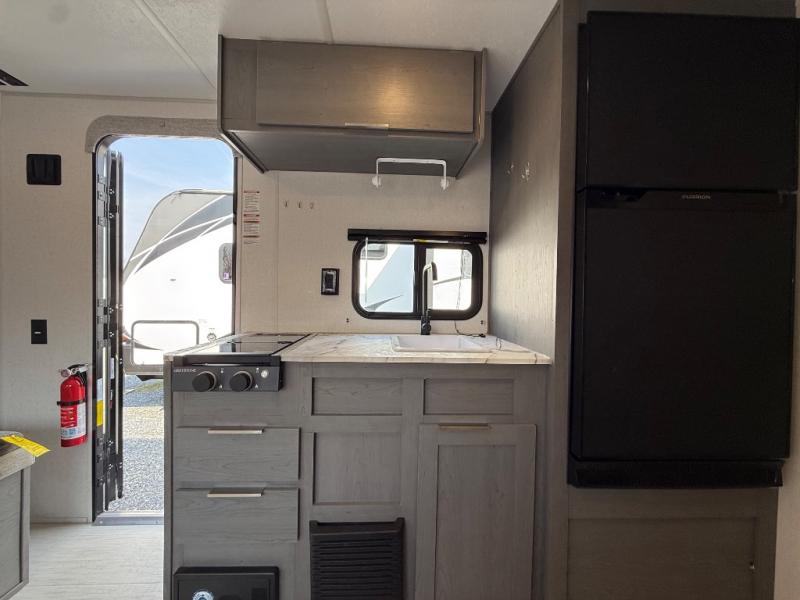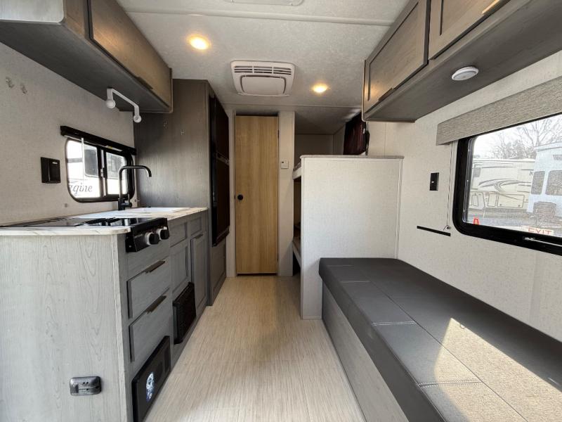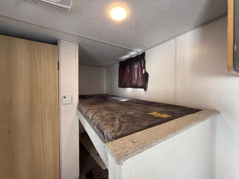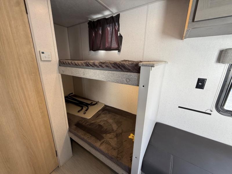 This Limited Edition travel trailer is perfect for your crew of five to six thanks to the added bunk beds with storage below! You can take the front queen bed for yourselves, and any other guests can sleep on the 60" sofa with overhead storage. Prepare all your meals in the fully-equipped kitchen that includes plenty of counter space and a 4.5 cu. ft. residential-style 110V refrigerator. You will also enjoy the full 24" x 36" shower to stay clean each day, and the 8' 12V power awning will provide an outdoor living space you are sure to love!