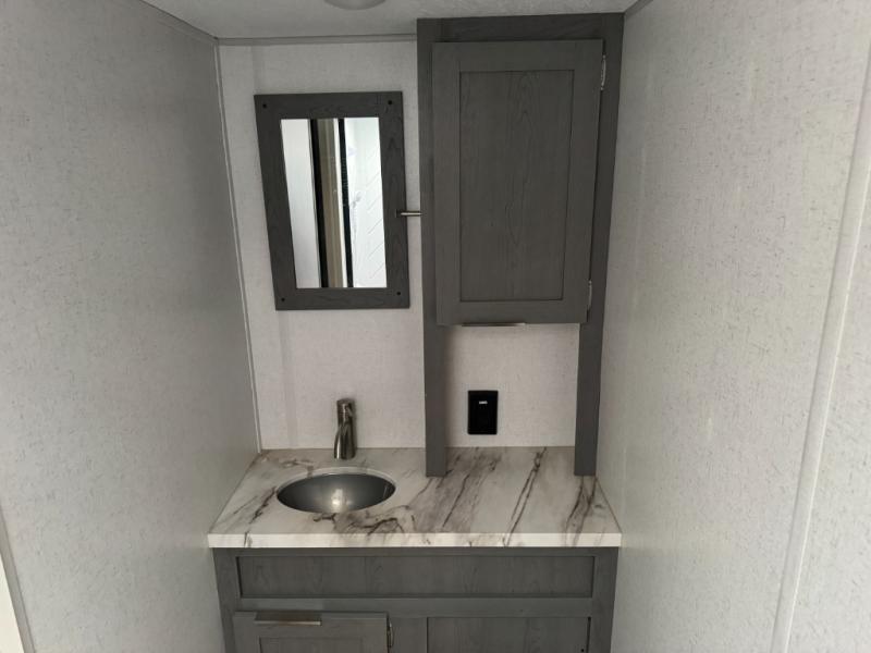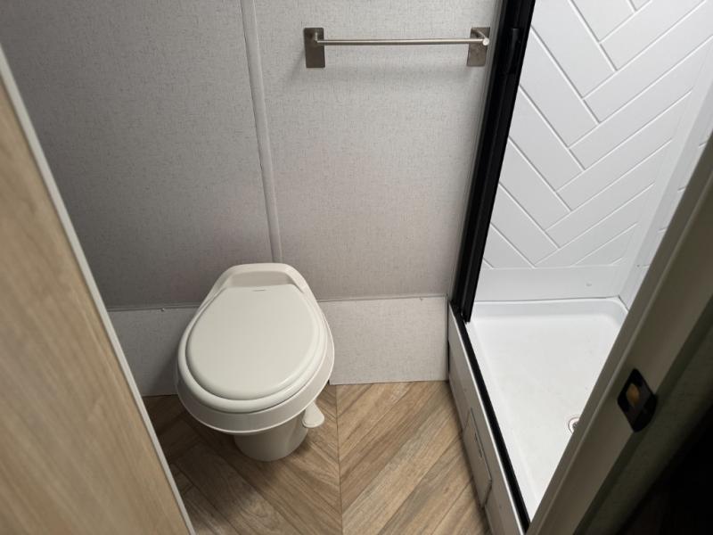 Just think about all of the new adventures you could have with this Ozark travel trailer! You have an exterior hot/cold shower to help you rinse the mud off of your boots, and there is also an exterior LP quick connect so that you can add a griddle for outdoor cooking. Once you make your way inside, you'll find a queen bed to your right. Because the full bathroom is located in the back, you have a little extra privacy as you get ready, and the dual swinging 12V refrigerator is always ready for you to come grab an ice-cold beverage. This model also includes the Ascent Package that includes an Ascent graphics package, upgraded steel wheels, and .040 smooth front metal along with the smooth fiberglass exterior!