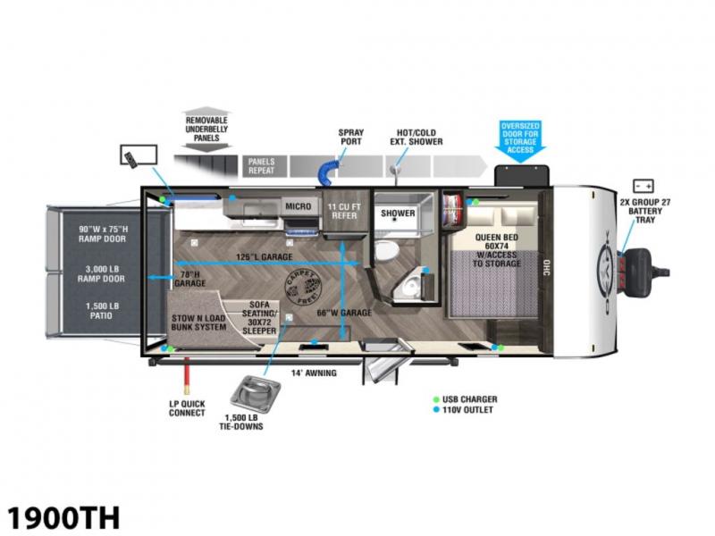 Forest River Ozark toy hauler 1900TH highlights: