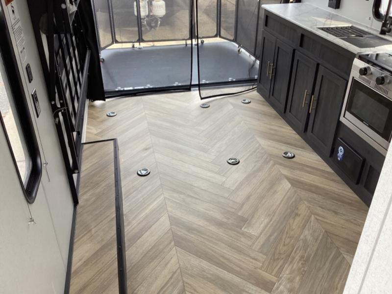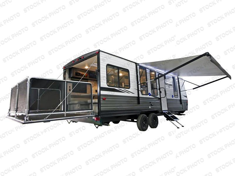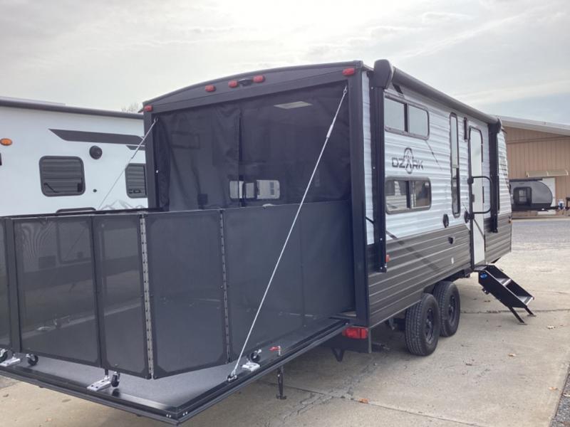Whatever journey you choose to take, the Forest River Ozark travel trailer or toy hauler will be well prepared to make that journey the best it can be! You'll have a full-length power awning with adjustable legs and LED lights to enhance your evenings spent outside. The friction-hinge entry door won't slam against the side of your trailer as soon as you open it, and the double step plus XL folding grab assist handle will create an easy way to enter your trailer. The class-leading window package will make sure that all of your scenic views are easily seen from the inside of your trailer, and the durable one-piece linoleum flooring ensures that cleaning won't be burdensome.
