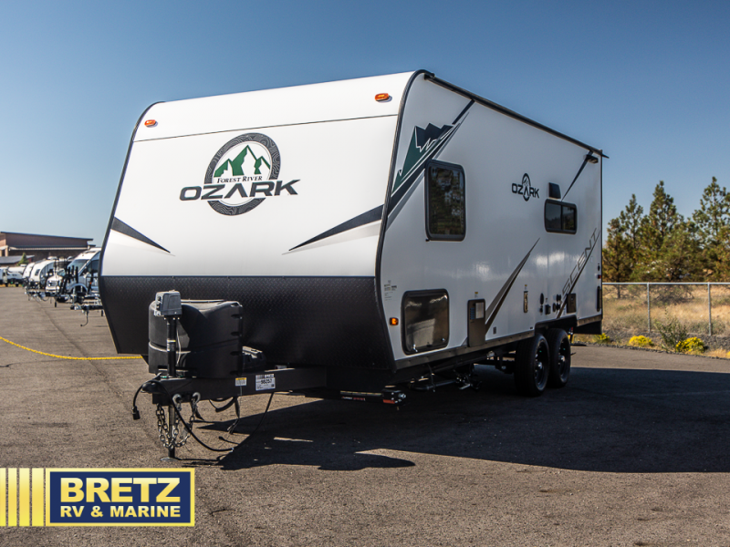 Whatever journey you choose to take, the Forest River Ozark travel trailer or toy hauler will be well prepared to make that journey the best it can be! You'll have a full-length power awning with adjustable legs and LED lights to enhance your evenings spent outside. The friction-hinge entry door won't slam against the side of your trailer as soon as you open it, and the double step plus XL folding grab assist handle will create an easy way to enter your trailer. The class-leading window package will make sure that all of your scenic views are easily seen from the inside of your trailer, and the durable one-piece linoleum flooring ensures that cleaning won't be burdensome.