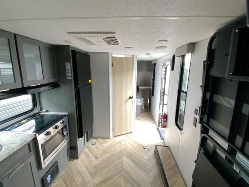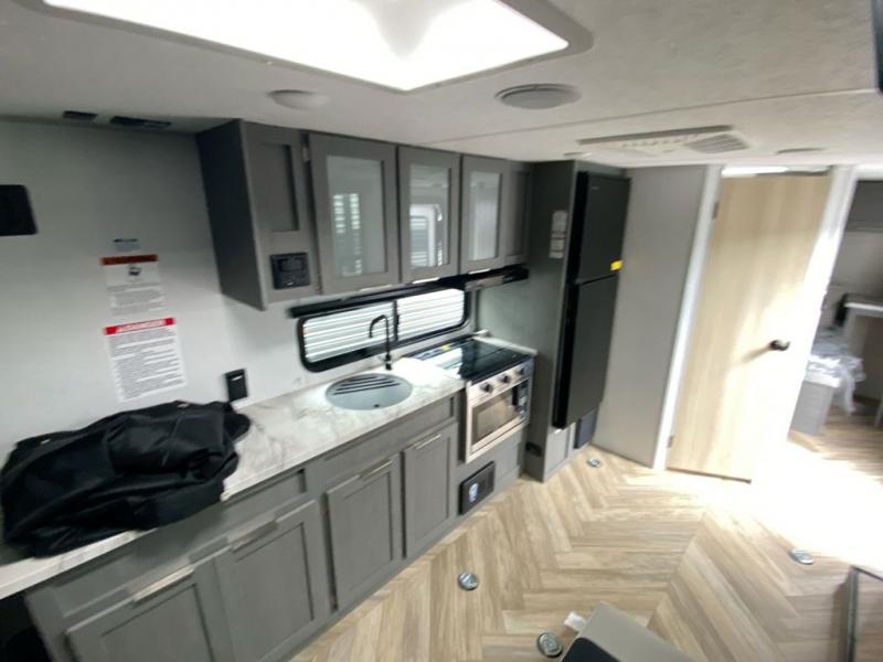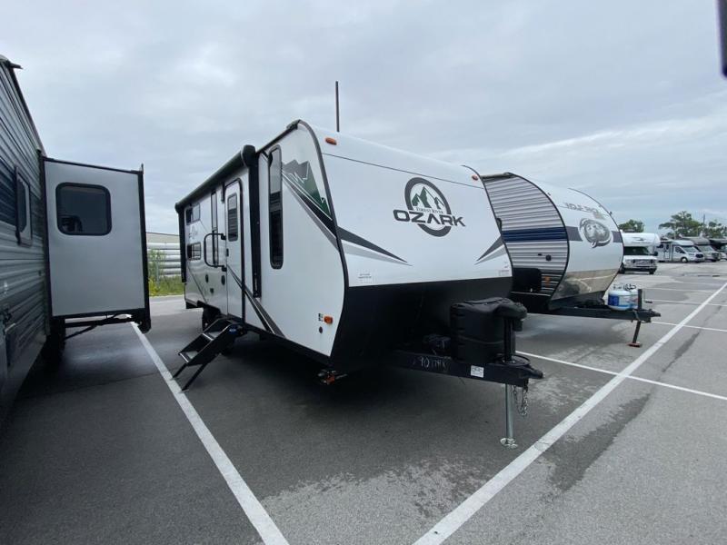Whatever journey you choose to take, the Forest River Ozark travel trailer or toy hauler will be well prepared to make that journey the best it can be! You'll have a full-length power awning with adjustable legs and LED lights to enhance your evenings spent outside. The friction-hinge entry door won't slam against the side of your trailer as soon as you open it, and the double step plus XL folding grab assist handle will create an easy way to enter your trailer. The class-leading window package will make sure that all of your scenic views are easily seen from the inside of your trailer, and the durable one-piece linoleum flooring ensures that cleaning won't be burdensome.