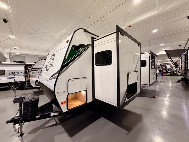 Whatever journey you choose to take, the Forest River Ozark travel trailer or toy hauler will be well prepared to make that journey the best it can be! You'll have a full-length power awning with adjustable legs and LED lights to enhance your evenings spent outside. The friction-hinge entry door won't slam against the side of your trailer as soon as you open it, and the double step plus XL folding grab assist handle will create an easy way to enter your trailer. The class-leading window package will make sure that all of your scenic views are easily seen from the inside of your trailer, and the durable one-piece linoleum flooring ensures that cleaning won't be burdensome.