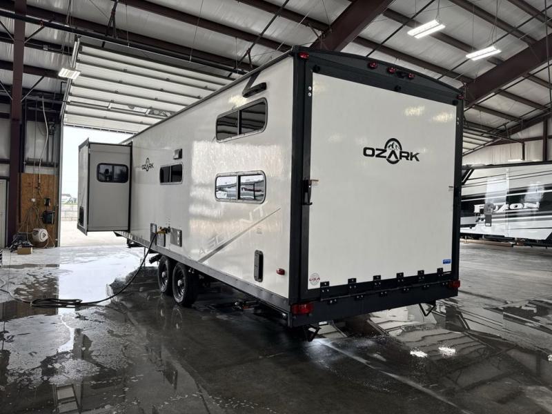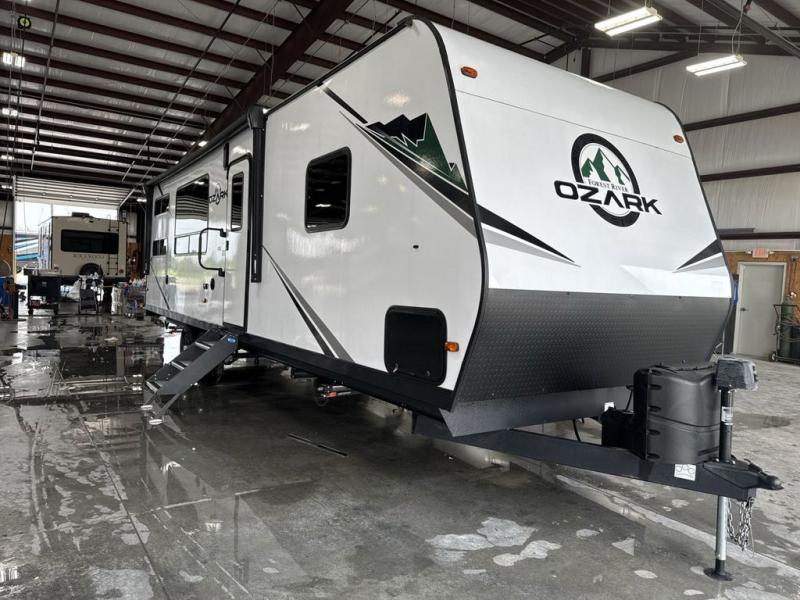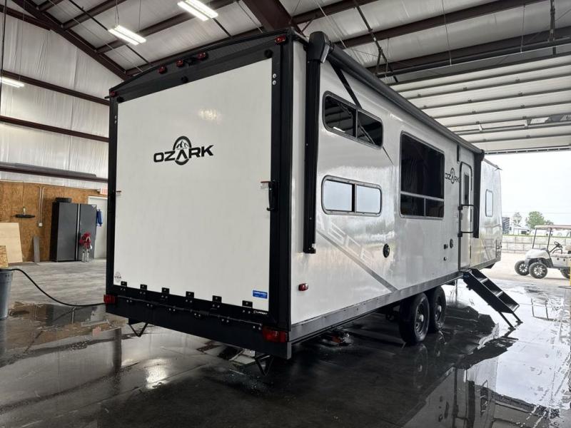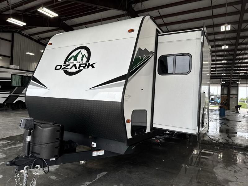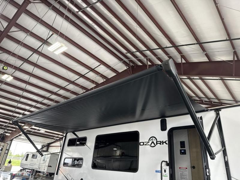 Whatever journey you choose to take, the Forest River Ozark travel trailer or toy hauler will be well prepared to make that journey the best it can be! You'll have a full-length power awning with adjustable legs and LED lights to enhance your evenings spent outside. The friction-hinge entry door won't slam against the side of your trailer as soon as you open it, and the double step plus XL folding grab assist handle will create an easy way to enter your trailer. The class-leading window package will make sure that all of your scenic views are easily seen from the inside of your trailer, and the durable one-piece linoleum flooring ensures that cleaning won't be burdensome.