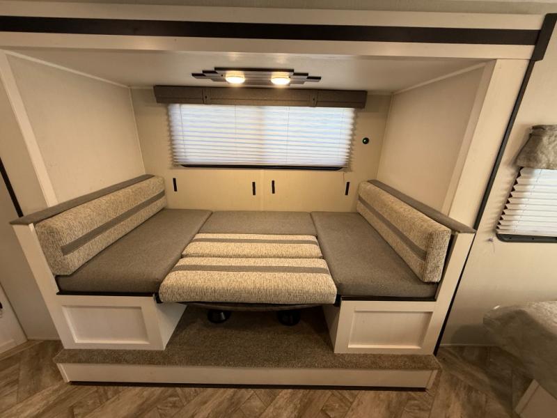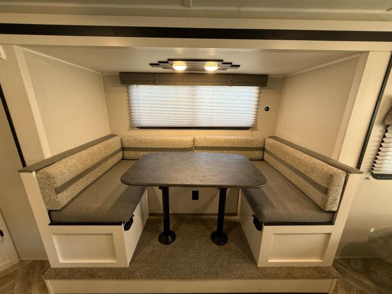 Spacious Slide-out Layout: the U-shaped dinette slide-out gives more interior floor space, making the living/dining area feel roomier when parked.
