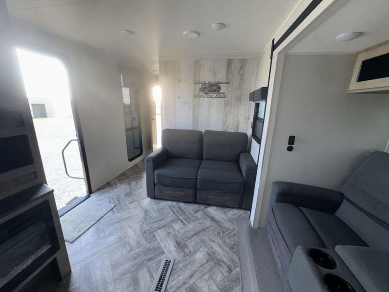If you're looking for family-fun adventure then you need one of these Palomino Puma fifth wheels, travel trailers, or toy haulers! They are built rugged, easy to tow, and jam packed with features. The Darco wrapped underbelly will protect your units vitals through every season and the AlphaPly roofing membrane covers it. They also have super lube axles and a powder coated frame. Their luxurious interiors feature a spice rack and built-in knife rack in the kitchen, USB charging ports to keep your electronics at 100%, and high density foam mattresses for a good night's rest. The required Advantage package comes with night roller shades for privacy at night, two outside speakers to crank up the tunes while you play cornhole, and an outside shower to keep the dirt outside where it belongs, plus so much more!