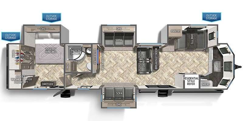 Step into the 2023 Puma 39FKL and you’re immediately welcomed by a front kitchen layout that feels more like a true residential space than a traditional destination trailer. Expansive counter areas, large windows, and generous cabinetry create a bright, open setting that invites you to cook, gather, and settle in with ease. The adjoining living area offers ample seating and a warm, home-like atmosphere, making it a comfortable place to relax, entertain, or enjoy quiet evenings. Every detail, from the flow of the floorplan to the finishes throughout, is designed to give the space the calm, grounded feeling of a well-loved home.