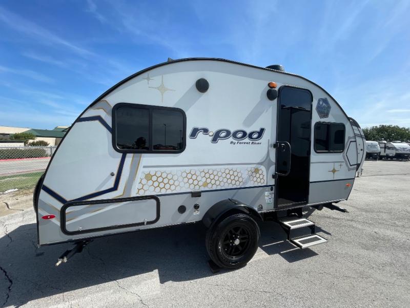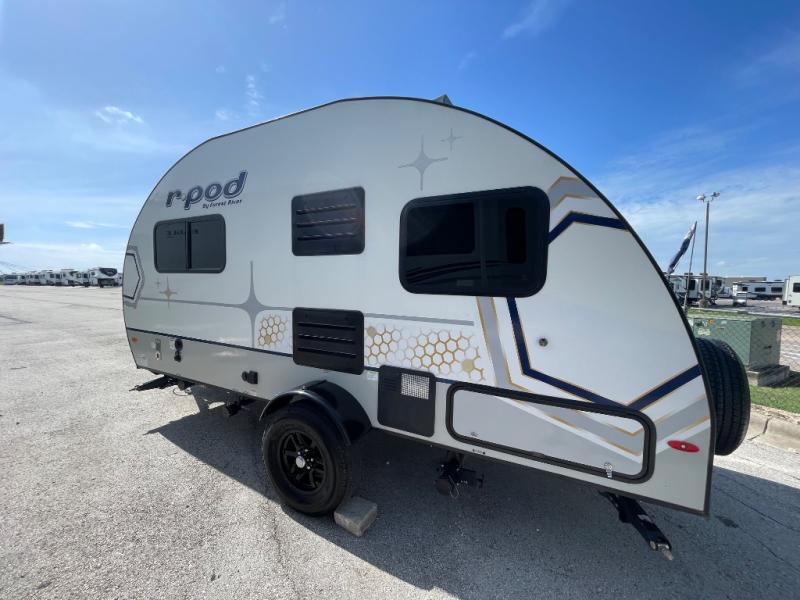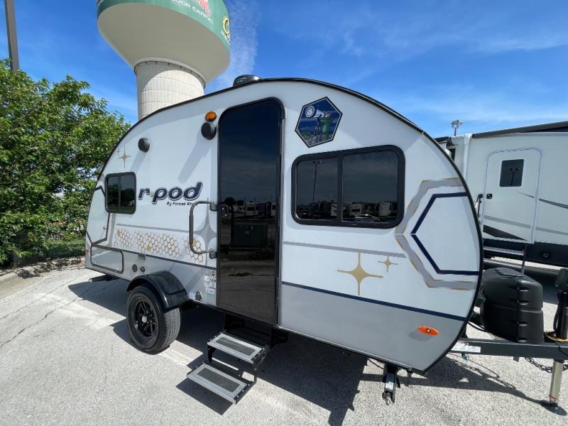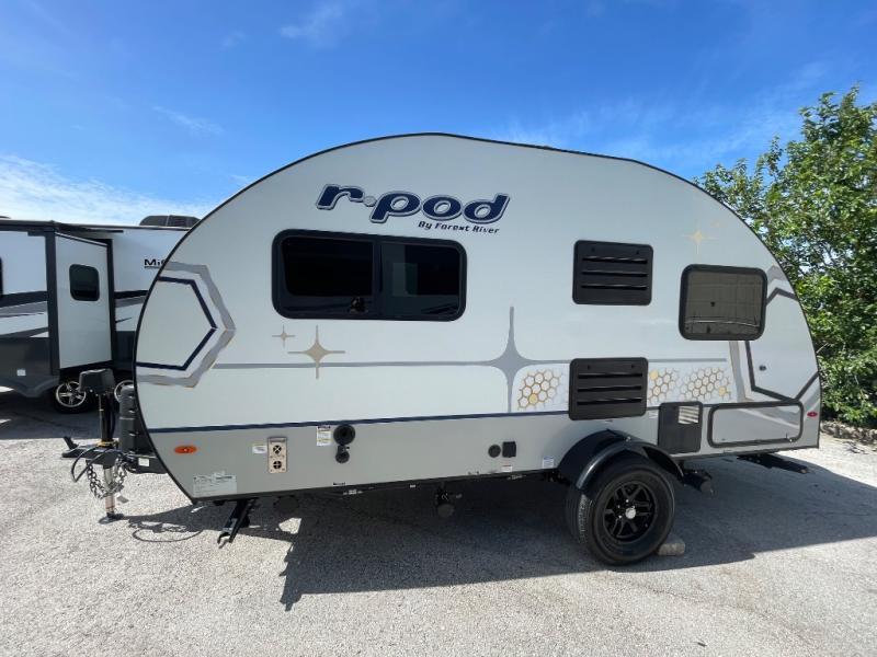 This R-Pod travel trailer by Forest River is perfect for your weekend getaways. You can easily sleep three people with a rear RV queen bed and the front dinette folded down for the little ones. This unit also includes a 28" 12V LED TV to enjoy while you're stuck inside on a rainy day. You will also find a convenient wet bath where you can easily get ready for your day of fun and adventure! Come check out this travel trailer today!