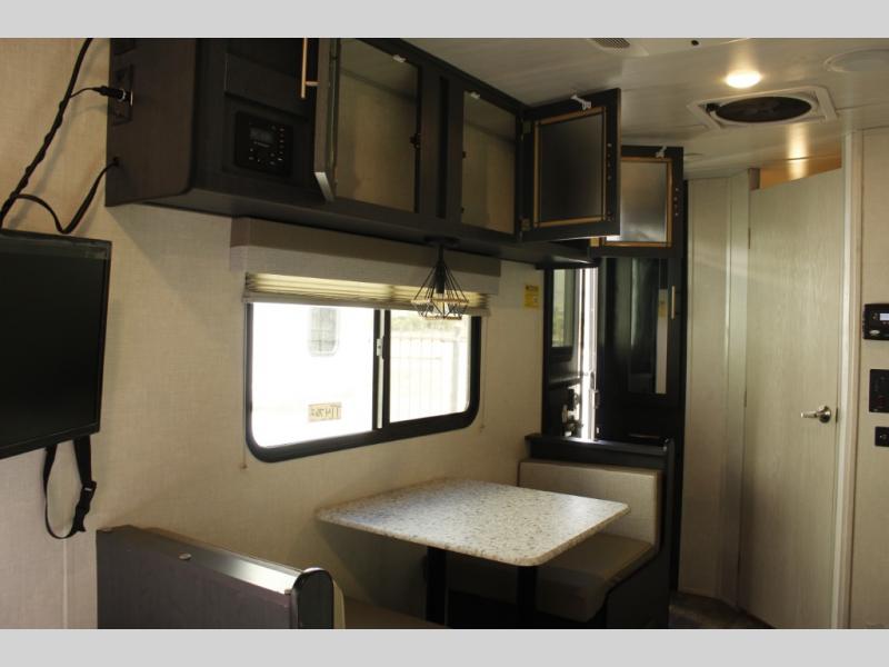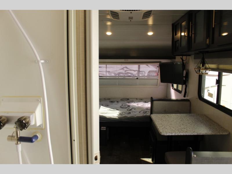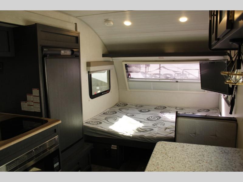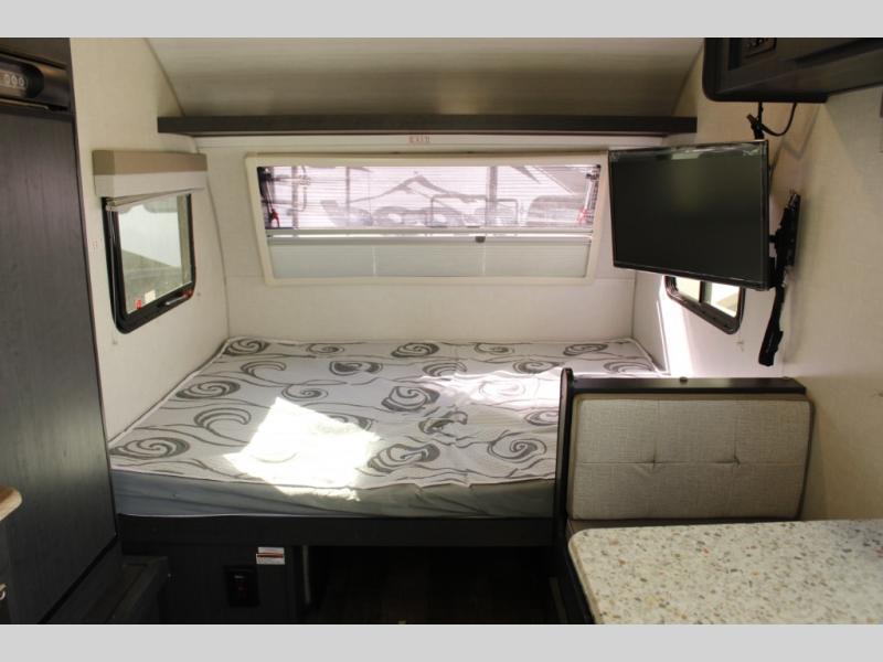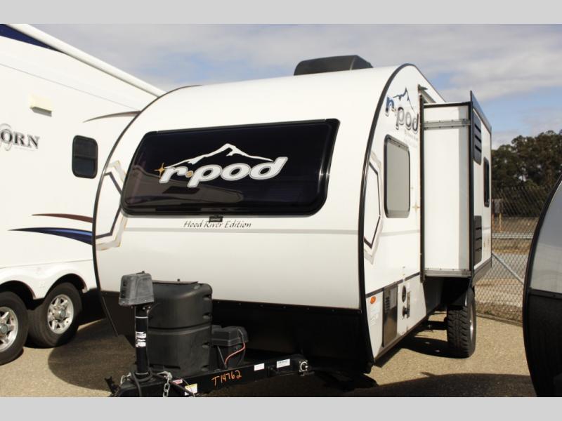 Get ready to travel just about anywhere with this lightweight R-Pod travel trailer! This model is ideal for any couple. There is sleeping space on the front RV queen bed, and the 24" x 75" booth dinette can easily convert into a sleeping spot for an additional camper. The slide out helps open up the floor space, plus you will find all of the kitchen amenities here. The spacious full bath has plenty of room to easily get ready for any adventure that lies ahead, and you will also enjoy all of the exterior storage for all of your outdoor camping gear. This unit even includes an LED TV for movie nights!