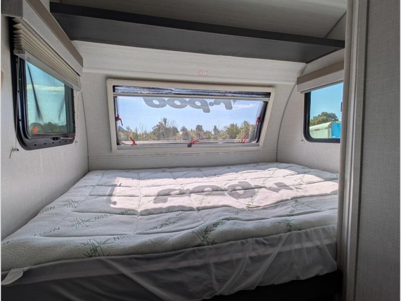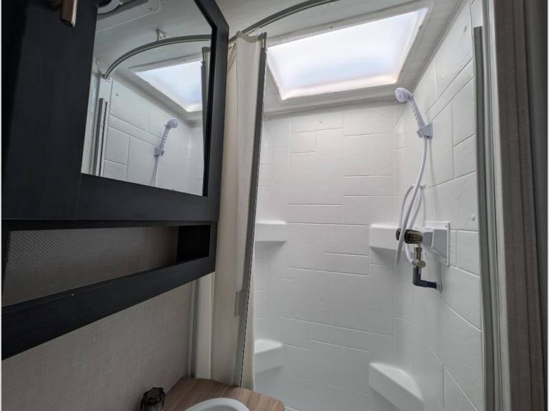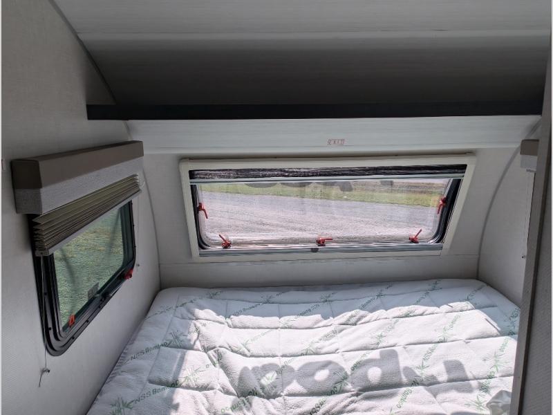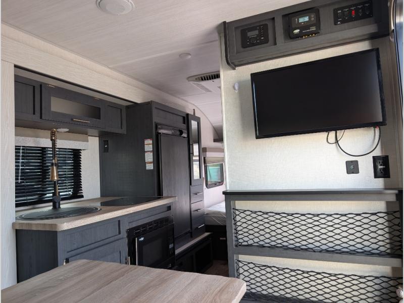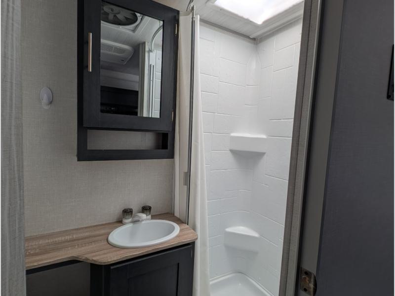 For the couple who is ready to camp anytime and anywhere, you will love how easy it is to camp with this R-Pod travel trailer. This unit features a single slide giving you room to move about. Within this slide, you will find the kitchen amenities which include a two-burner cooktop and a gas/electric refrigerator. You can enjoy your meals at the U-shaped dinette, and this can double as a sleeping space, if needed. Along the front of this model is an RV queen bed where you can rest up for another day of fun and adventure, and with all of the exterior storage, you can easily bring along all of your necessary camping items and more!