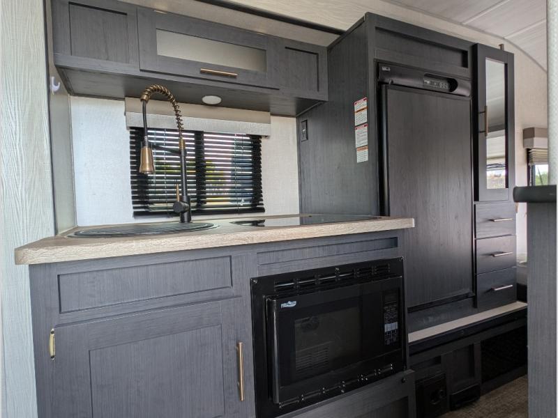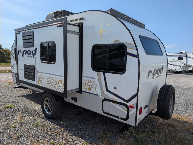 The Forest River R-Pod travel trailer is an excellent choice for lightweight towing! With convenient features like the Azdel composite panels that will completely withstand water damage and designer Carefree flooring that will make it easy to clean up messes, this is a great choice for easy living. The R-Pod has LED exterior lights, outside speakers, and self-adjusting brakes for convenience. Step inside to find decorative window treatments, shaker style cabinetry, seamless kitchen countertops, and a 6' 6" interior height to provide ample room to relax. These models also include the Hood River Edition with advanced ground clearance, X-treme 15" off-road tires, and more, plus the Beast Mode Value Package with all new premium exterior graphics, exclusive aluminum wheel upgrade, a tire pressure monitor system, and the list continues. You can even add the optional Unplugged Package that will allow you to go off-grid when the adventure calls for it!
