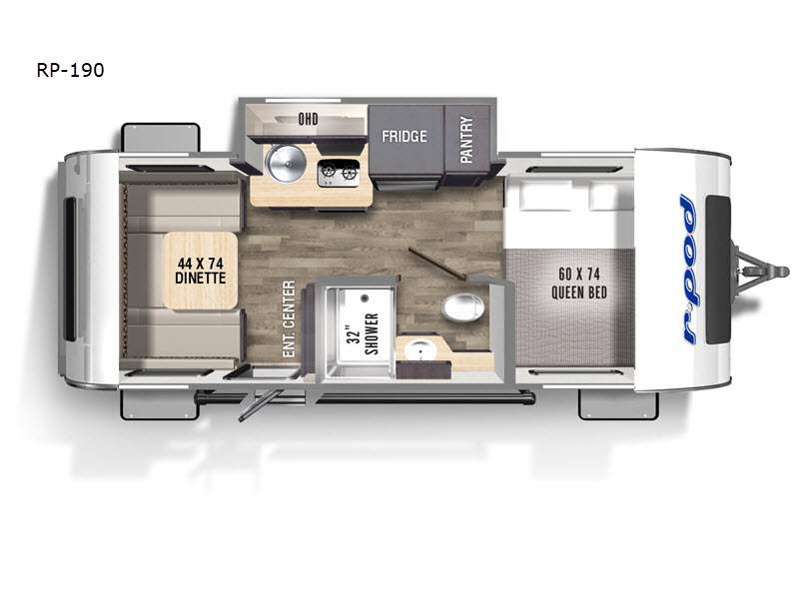 The Forest River R-Pod travel trailer is an excellent choice for lightweight towing! With convenient features like the Azdel composite panels that will completely withstand water damage and designer Carefree flooring that will make it easy to clean up messes, this is a great choice for easy living. The R-Pod has LED exterior lights, outside speakers, and self-adjusting brakes for convenience. Step inside to find decorative window treatments, shaker style cabinetry, seamless kitchen countertops, and a 6' 6" interior height to provide ample room to relax.