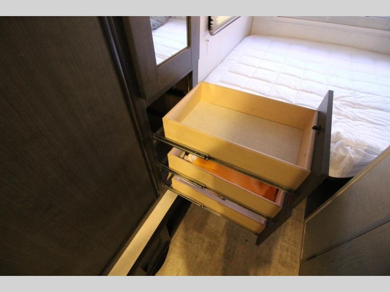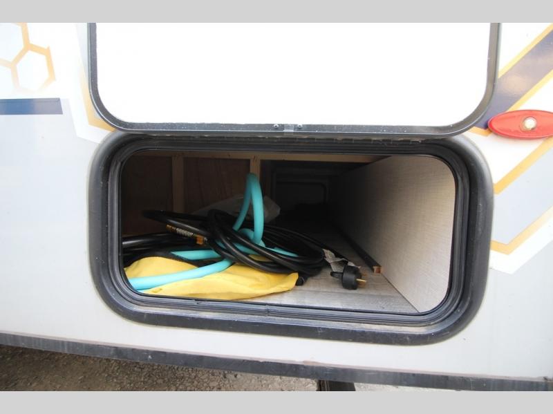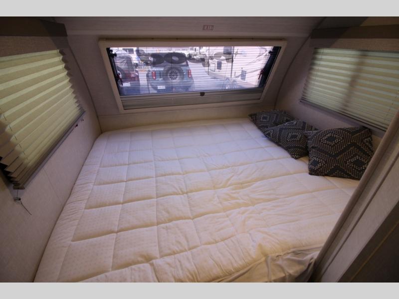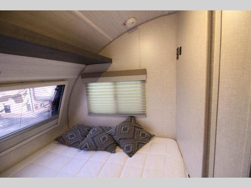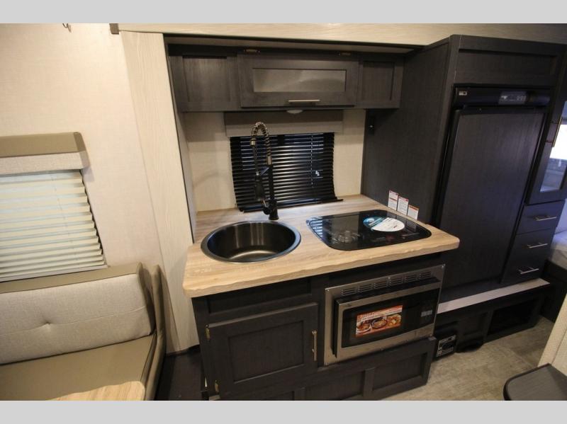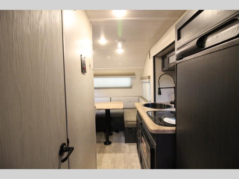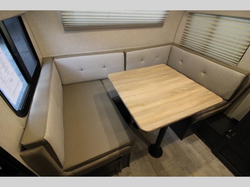 For the couple who is ready to camp anytime and anywhere, you will love how easy it is to travel with this R-Pod travel trailer. You can easily set up the single slide to give you more room to move about. Within this slide, you will find the kitchen amenities, which include a two-burner cooktop, convection microwave and an 8 cu.ft. 12V refrigerator. You can enjoy your meals at the U-shaped dinette, and this furniture can double as a sleeping space, if needed. Along the front is an RV queen bed where you can rest up for another day of fun and adventure. With all of the exterior storage, you can bring along all of your necessary camping items and more!