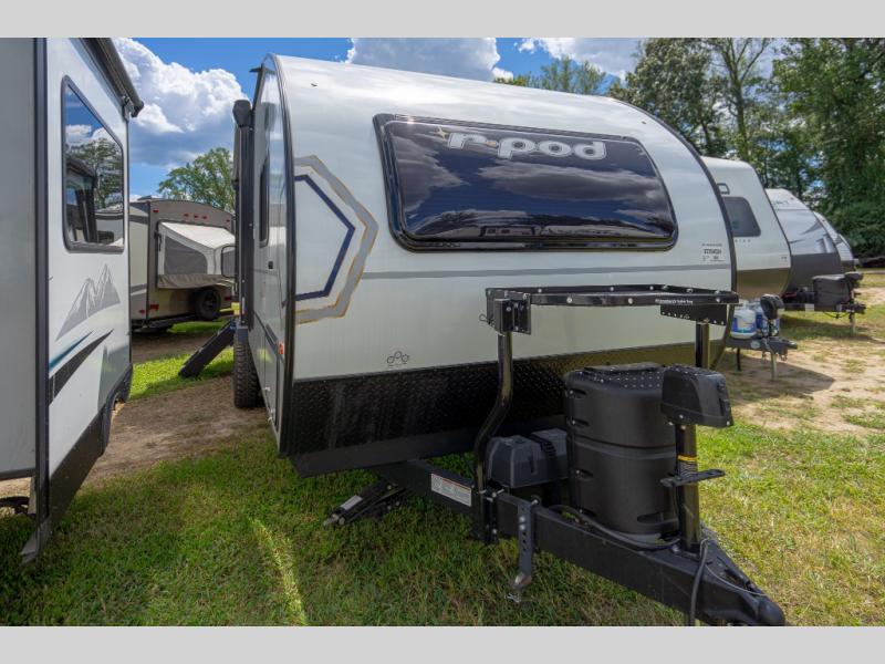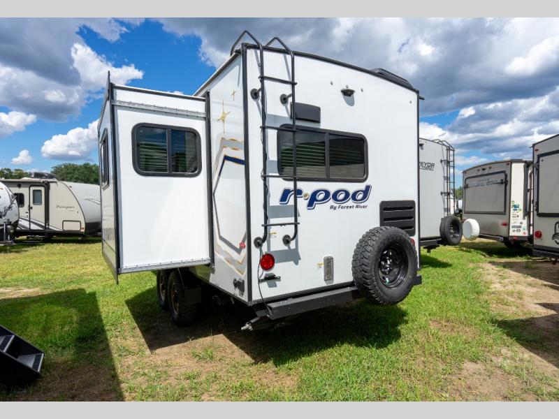 The Forest River R-Pod travel trailer is an excellent choice for lightweight towing! With convenient features like the Azdel composite panels that will completely withstand water damage and designer Carefree flooring that will make it easy to clean up messes, this is a great choice for easy living. The R-Pod has LED exterior lights, outside speakers, and self-adjusting brakes for convenience. Step inside to find decorative window treatments, shaker style cabinetry, seamless kitchen countertops, and a 6' 6" interior height to provide ample room to relax.