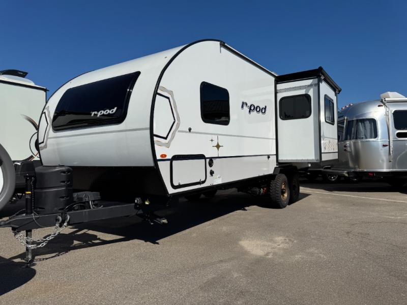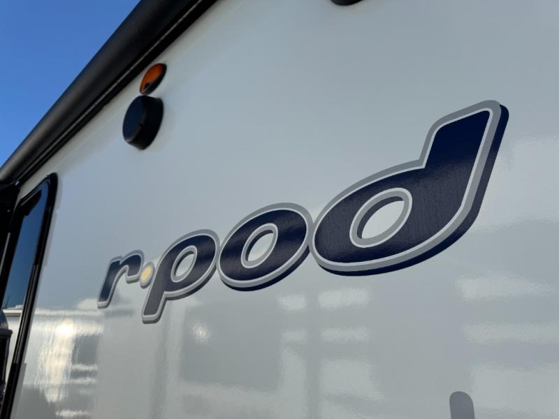 The Forest River R-Pod travel trailer is an excellent choice for lightweight towing! With convenient features like the Azdel composite panels that will completely withstand water damage and designer Carefree flooring that will make it easy to clean up messes, this is a great choice for easy living. The R-Pod has LED exterior lights, outside speakers, and self-adjusting brakes for convenience. Step inside to find decorative window treatments, shaker style cabinetry, seamless kitchen countertops, and a 6' 6" interior height to provide ample room to relax. These models also include the Hood River Edition with advanced ground clearance, X-treme 15" off-road tires, and more, plus the Beast Mode Value Package with all new premium exterior graphics, exclusive aluminum wheel upgrade, a tire pressure monitor system, and the list continues. You can even add the optional Unplugged Package that will allow you to go off-grid when the adventure calls for it!