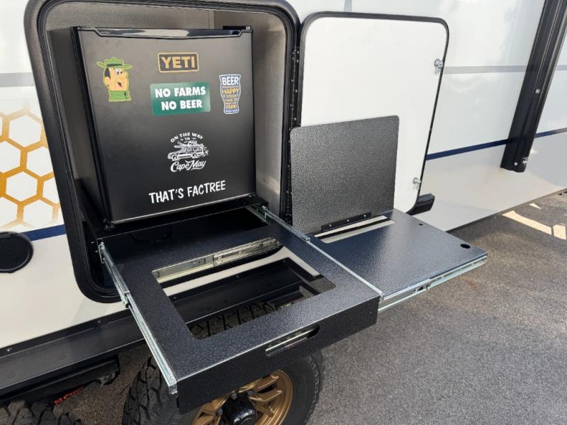 • Beast Mode Package - (2000W inverter • 30A charge controller • Roof-mounted solar panel • Upgraded aluminum wheels • Tire pressure monitoring system (TPMS) • Dual-pane acrylic front window with screen/shade • “Cosmic Graphite” interior décor • Butcher block countertops • Beast Mode exterior graphics • Upgraded vinyl furniture • Largest-in-class refrigerator)