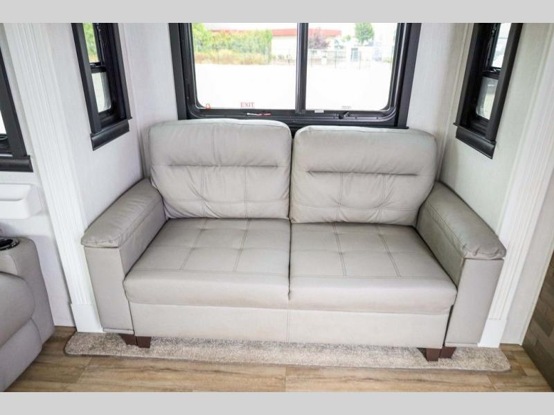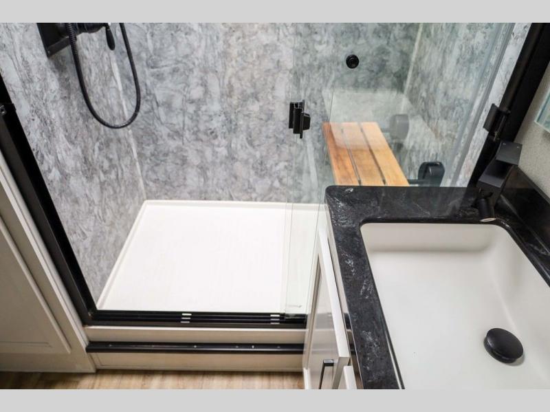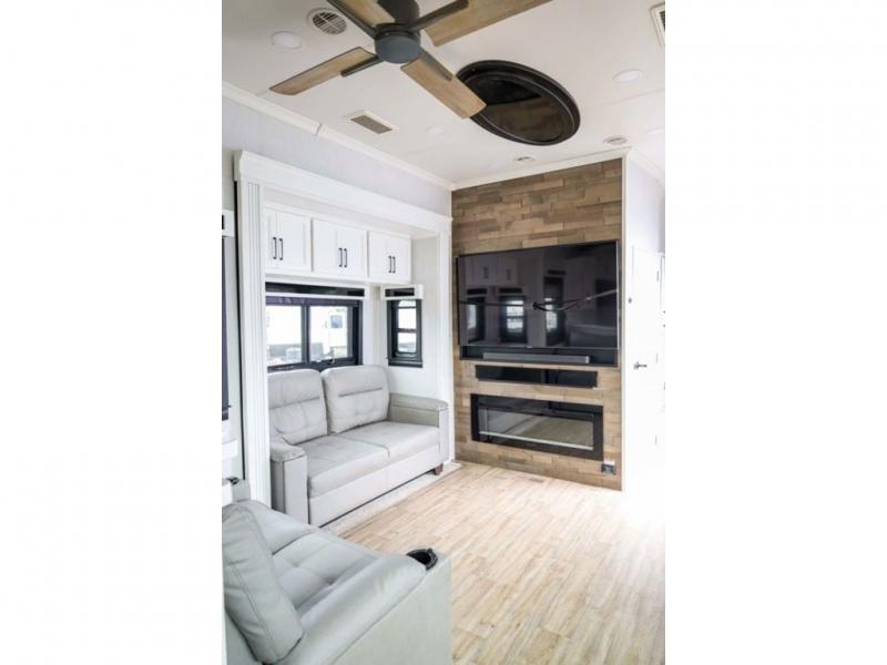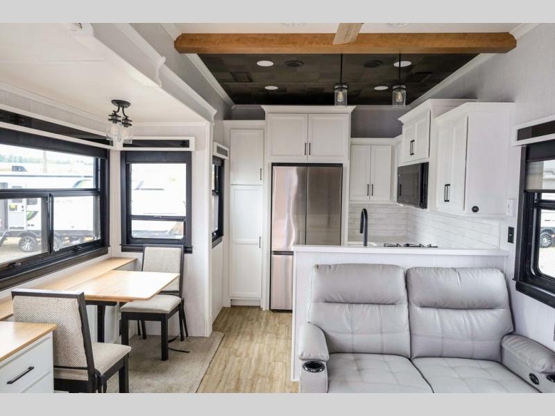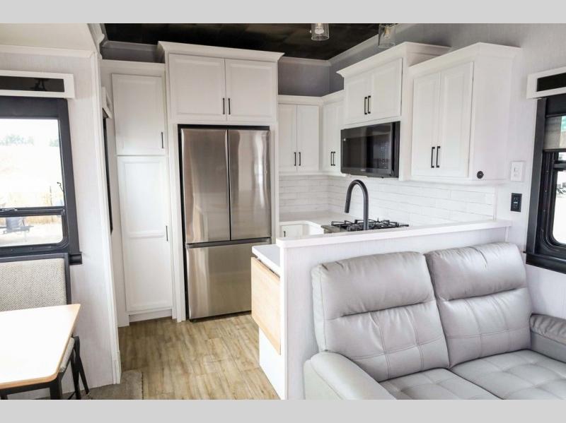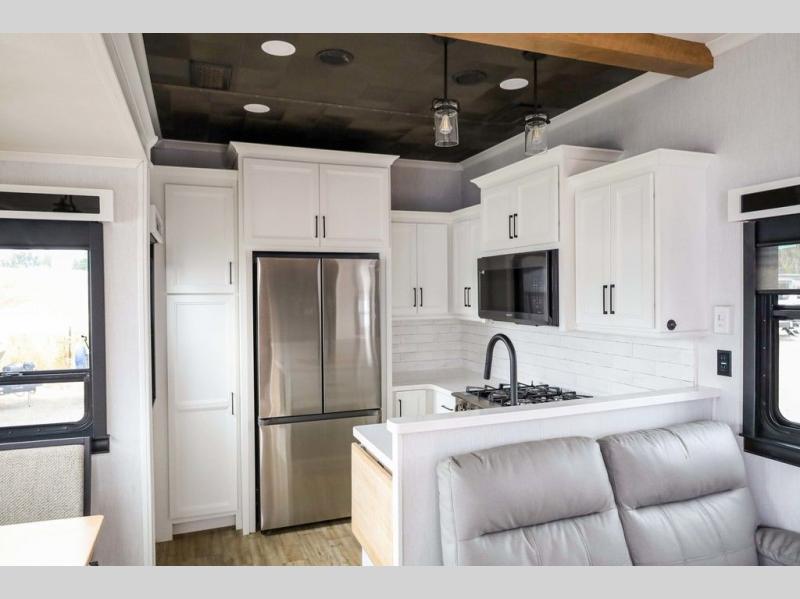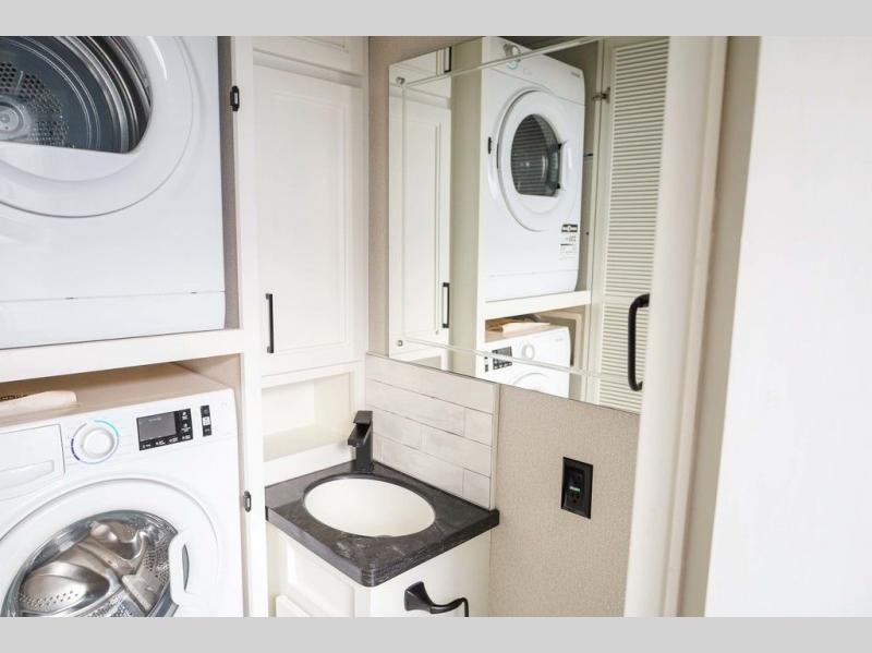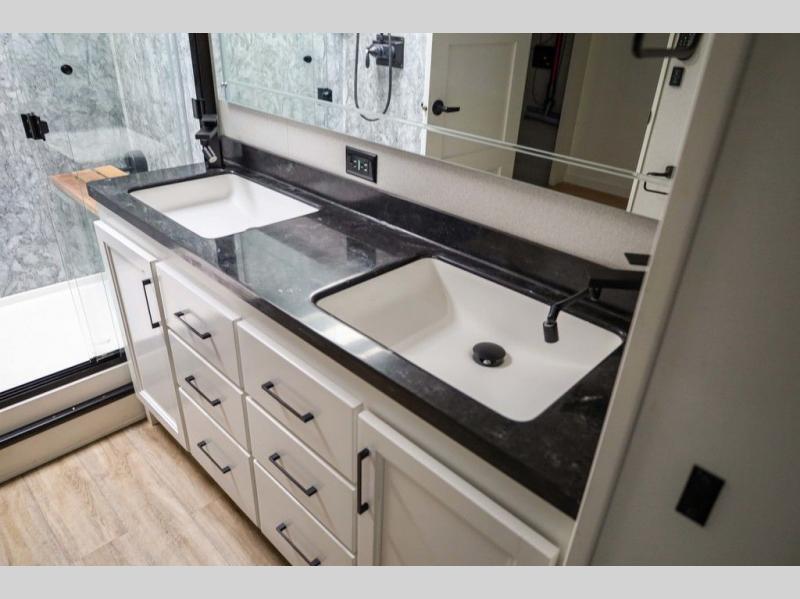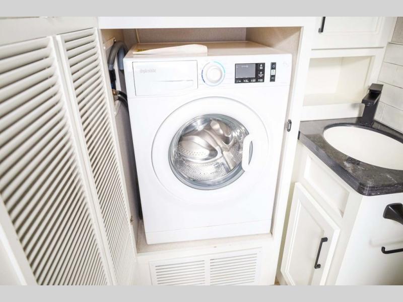 The Forest River RiverStone fifth wheels and toy haulers are luxurious units that have it all! You'll find an automatic six-point hydraulic level-up system to keep your unit in place, and there is preparation for a four-camera observation system. The King Wi-Fi Max router and omni-directional Wi-Fi antenna/extender will help you stay connected to the outside world, and you'll never have to overpack again since the Splendid “Astral” stackable washer and dryer will let you clean the small amount of clothes you've brought with you. Another high luxury is the Fischer Paykal dishwasher which will allow you to spend more time enjoying your camp life and less time cleaning up. Each unit is built with a Trail-Aire Road Armour suspension system, dual-pane frameless windows, a full docking station, a 190W solar panel, and a Firefly integrated touch control system.