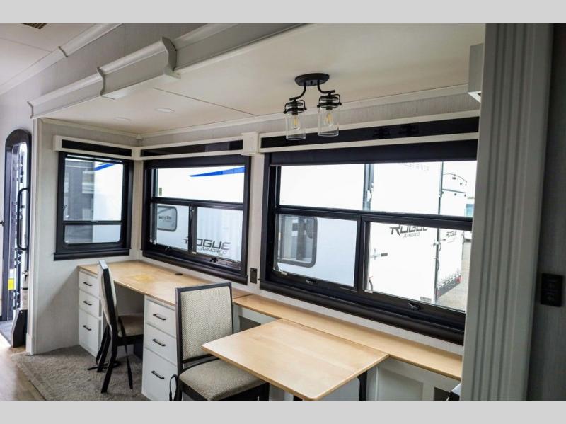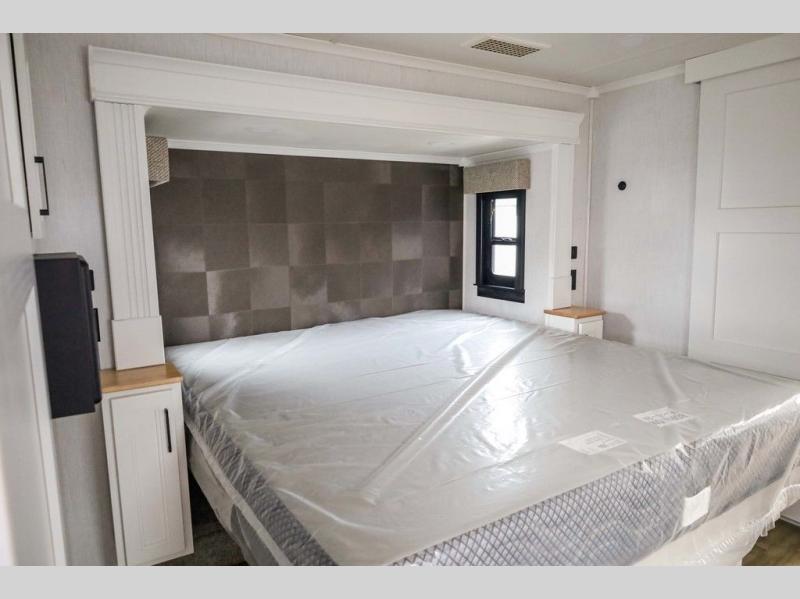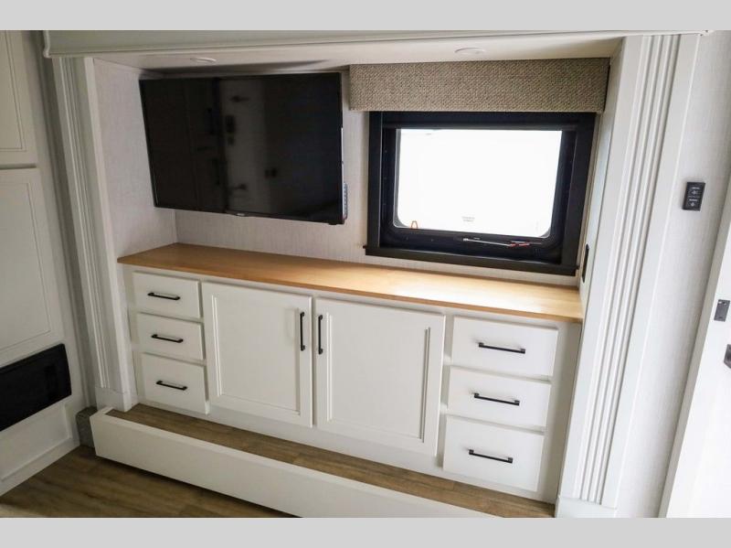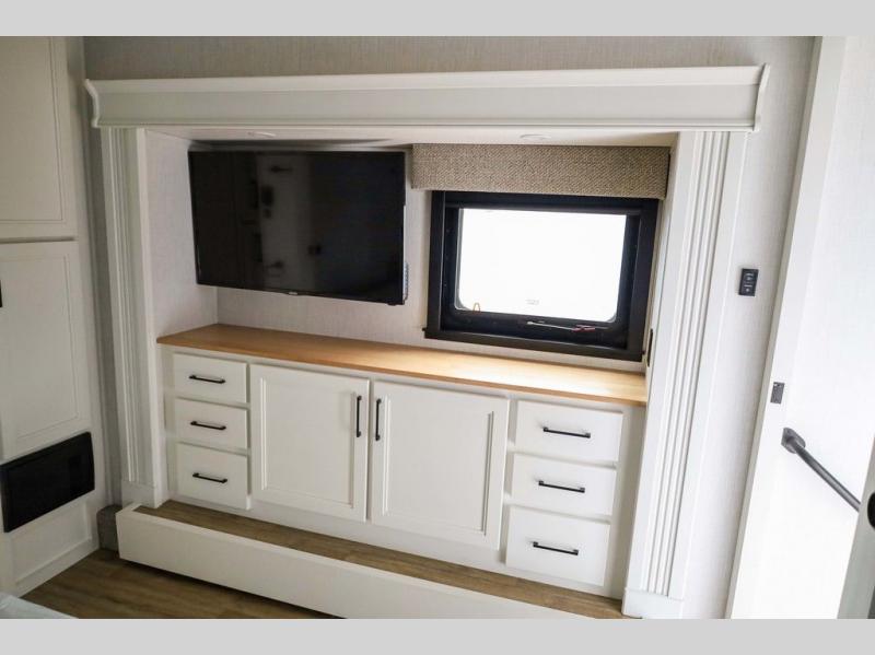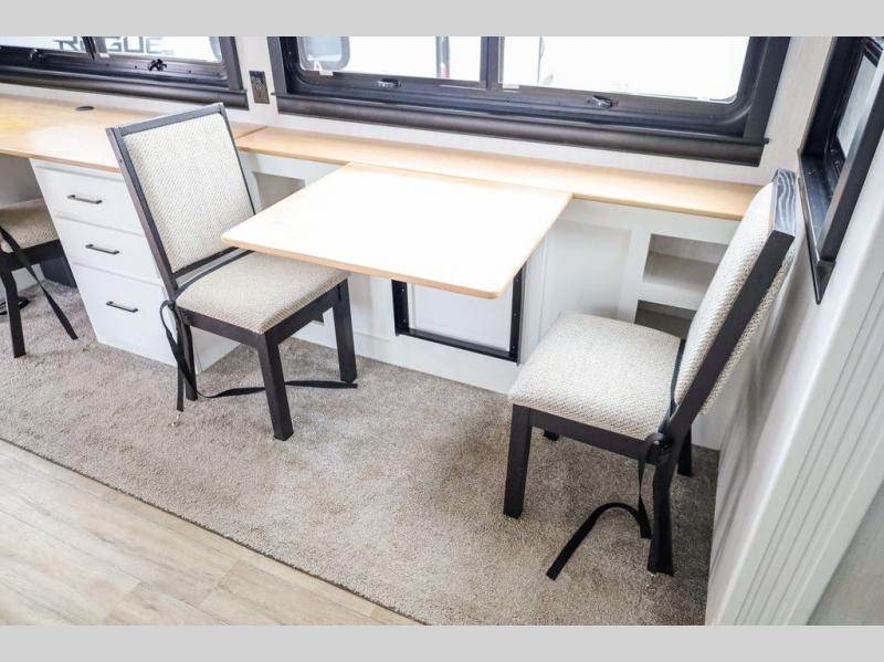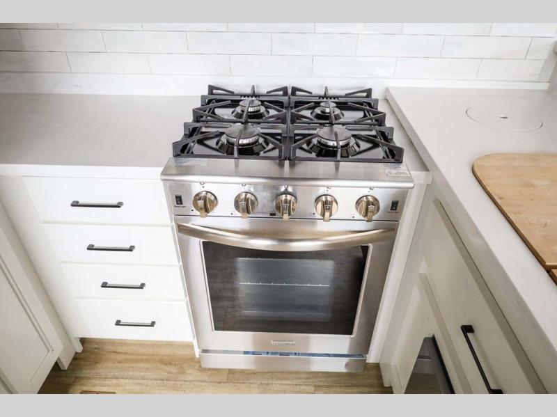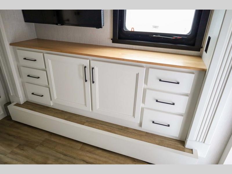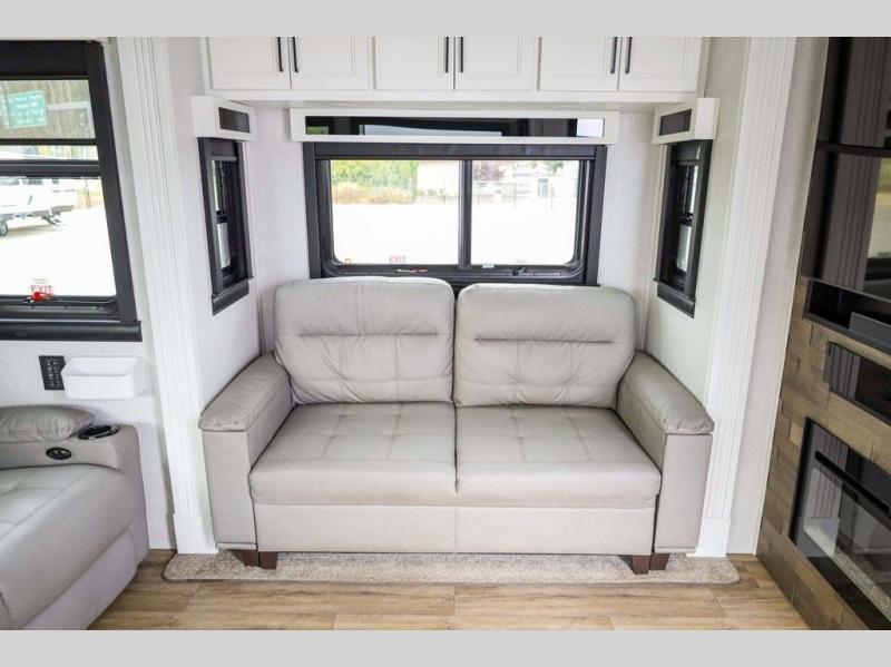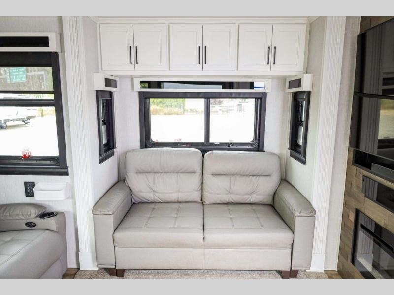 The Forest River RiverStone fifth wheels and toy haulers are luxurious units that have it all! You'll find an automatic six-point hydraulic level-up system to keep your unit in place, and there is preparation for a four-camera observation system. The King Wi-Fi Max router and omni-directional Wi-Fi antenna/extender will help you stay connected to the outside world, and you'll never have to overpack again since the Splendid “Astral” stackable washer and dryer will let you clean the small amount of clothes you've brought with you. Another high luxury is the Fischer Paykal dishwasher which will allow you to spend more time enjoying your camp life and less time cleaning up. Each unit is built with a Trail-Aire Road Armour suspension system, dual-pane frameless windows, a full docking station, a 190W solar panel, and a Firefly integrated touch control system.
