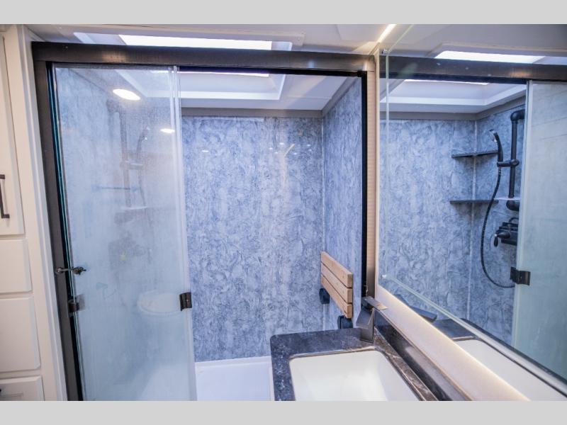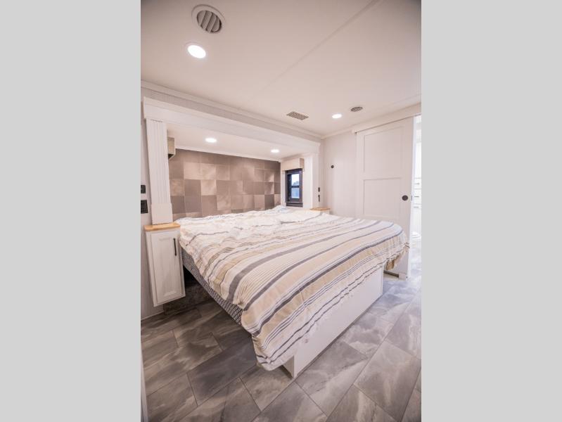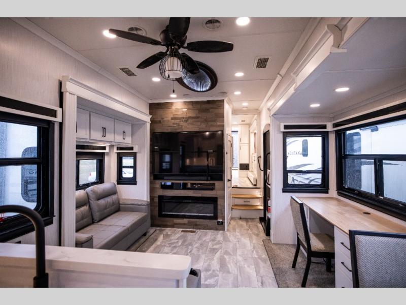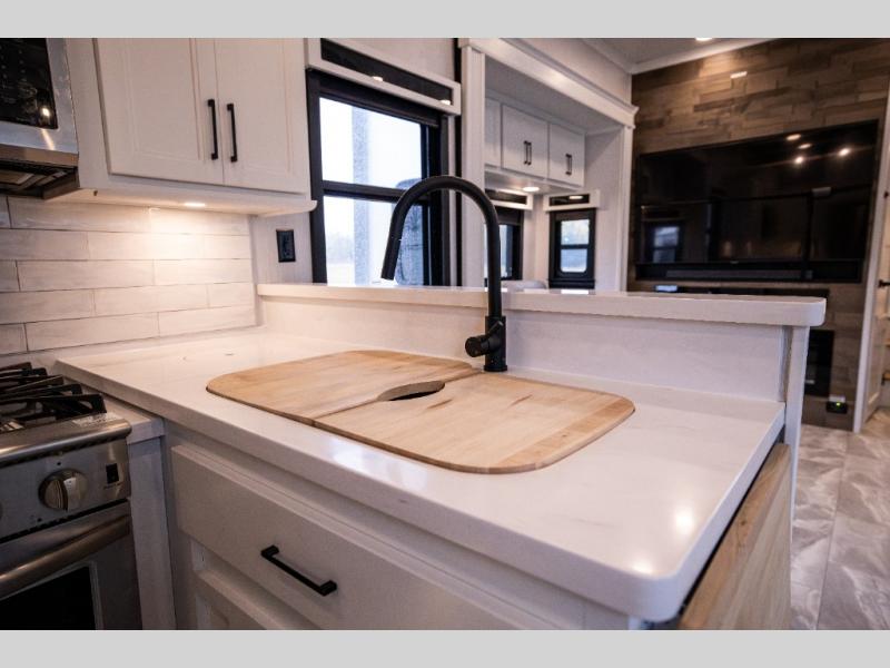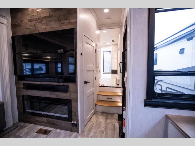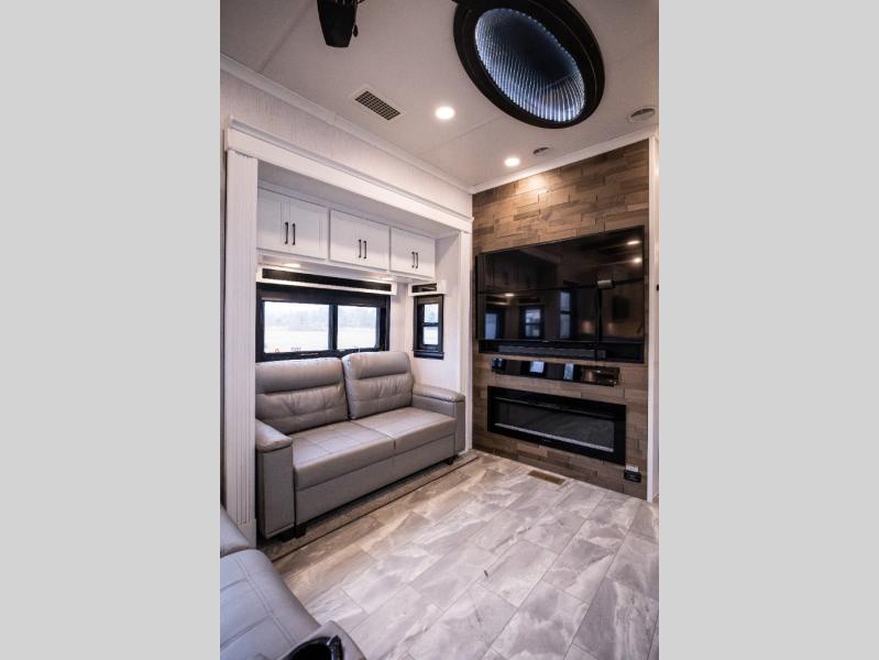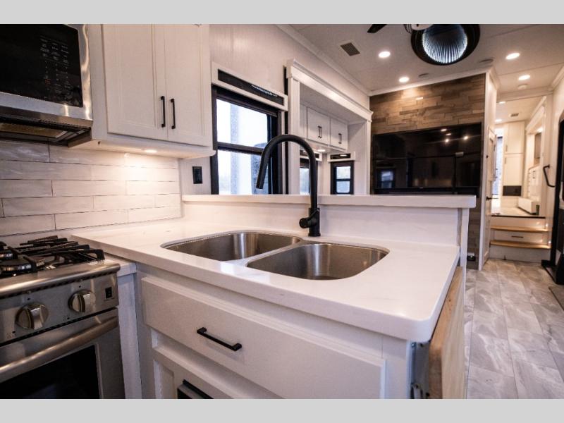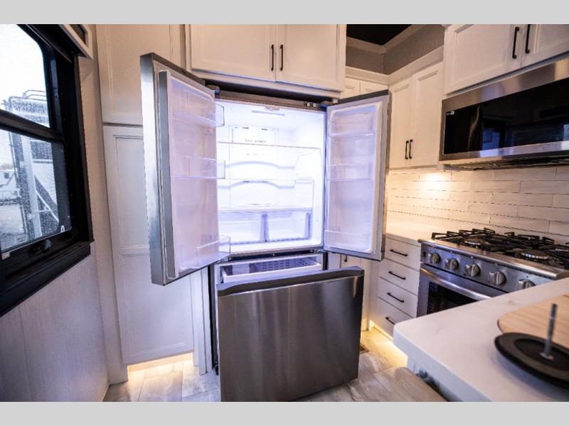 The Forest River RiverStone fifth wheels and toy haulers are luxurious units that have it all! You'll find an automatic six-point hydraulic level-up system to keep your unit in place, and there is preparation for a four-camera observation system. The King Wi-Fi Max router and omni-directional Wi-Fi antenna/extender will help you stay connected to the outside world, and you'll never have to overpack again since the Splendid “Astral” stackable washer and dryer will let you clean the small amount of clothes you've brought with you. Another high luxury is the Fischer Paykal dishwasher which will allow you to spend more time enjoying your camp life and less time cleaning up. Each unit is built with a Trail-Aire Road Armour suspension system, dual-pane frameless windows, a full docking station, a 190W solar panel, and a Firefly integrated touch control system.
