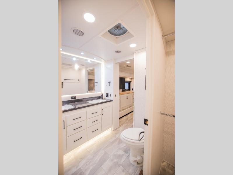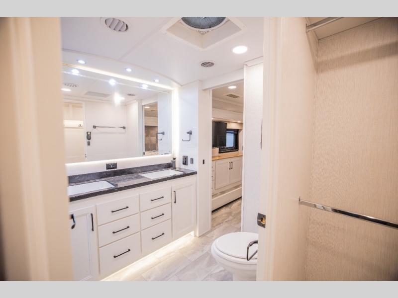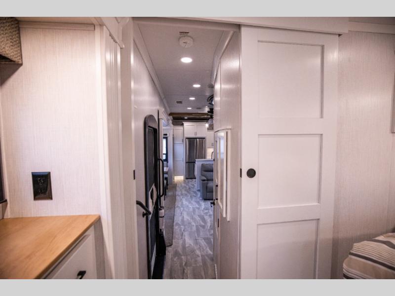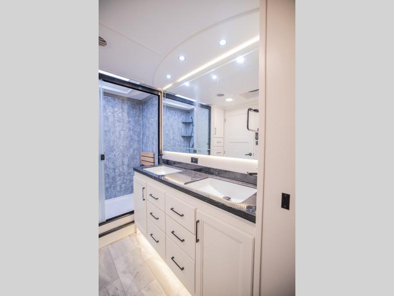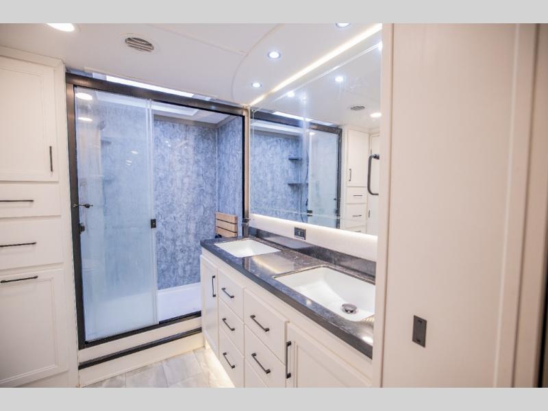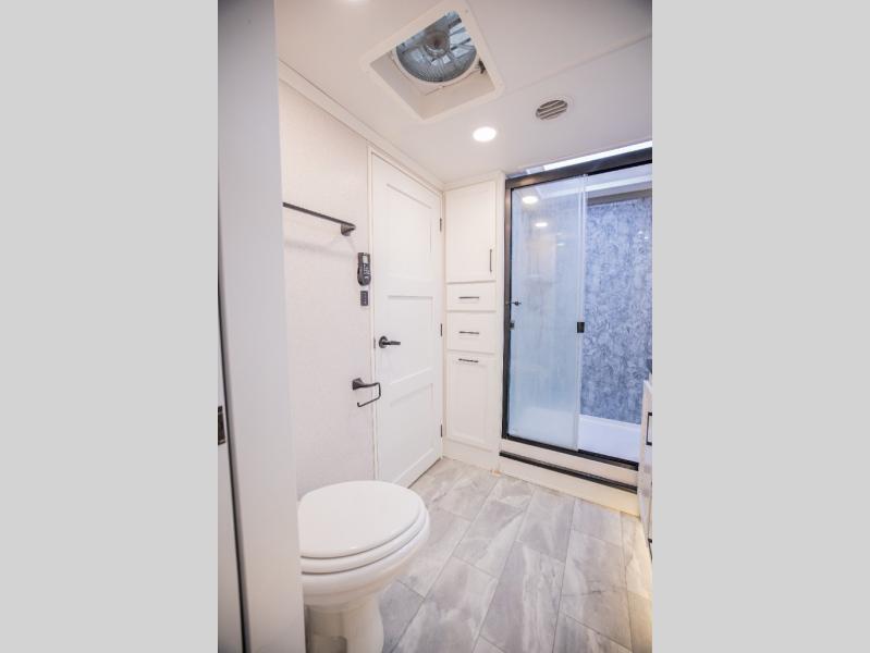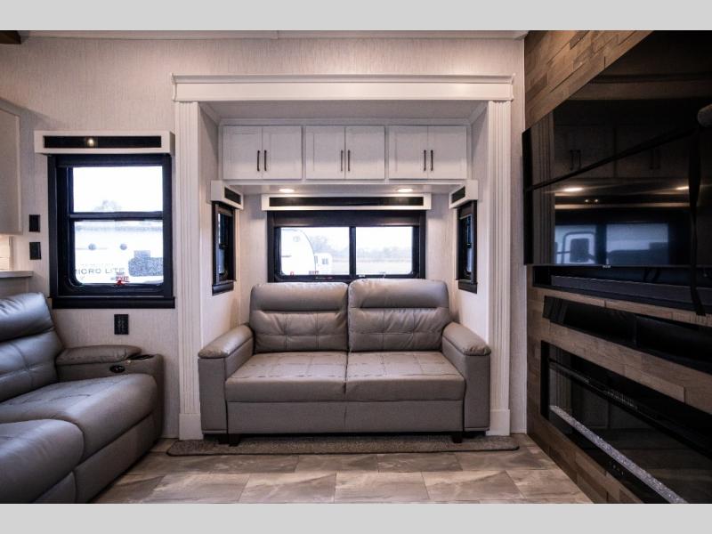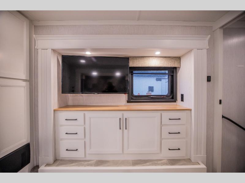 The Forest River RiverStone fifth wheels and toy haulers are luxurious units that have it all! You'll find an automatic six-point hydraulic level-up system to keep your unit in place, and there is preparation for a four-camera observation system. The King Wi-Fi Max router and omni-directional Wi-Fi antenna/extender will help you stay connected to the outside world, and you'll never have to overpack again since the Splendid “Astral” stackable washer and dryer will let you clean the small amount of clothes you've brought with you. Another high luxury is the Fischer Paykal dishwasher which will allow you to spend more time enjoying your camp life and less time cleaning up. Each unit is built with a Trail-Aire Road Armour suspension system, dual-pane frameless windows, a full docking station, a 190W solar panel, and a Firefly integrated touch control system.