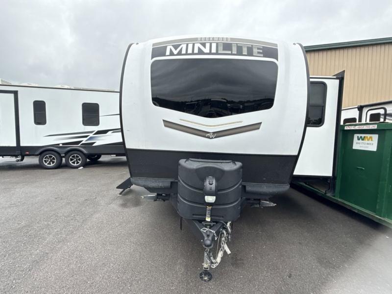 Each Rockwood Mini Lite travel trailer by Forest River is constructed with a fully laminated one-piece walkable roof, sleek frameless windows, and a six-sided full aluminum frame for strength and durability. The 12V thermostatically controlled heated tanks, plus radiant foil in the underbelly, front caps, and slide out floors will allow you to camp well into the colder months, and the 200W roof solar panel will be perfect for a little off-gridding. Each model includes solid surface kitchen countertops, solid wood cabinet doors, night roller shades, plus many more interior features. Having a Teton all in one Wi-Fi booster/LTE prep and antenna on board will allow you to get some work done if it's needed, and the power tongue jack provides hassle-free set up, so you can enjoy more time relaxing!