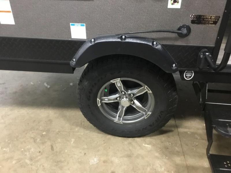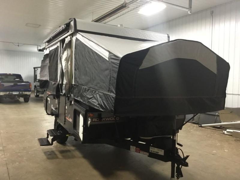 With any Rockwood Extreme Sports Package folding pop-up camper, you will have confidence in the construction from the powder coated tubular steel frame, the fiberglass vacuum bonded radius roof with no center seam, the five-piece Vinolon Supreme tenting, and the full perimeter aluminum bed frames. The ESP Extreme package provides features such as aluminum wheels with 15" Mud Rover tires for better ground-clearance to reach places most RVs wouldn't try, a 200W roof mount solar panel with 1000W inverter, ProRac permanent crossbars, and a power roof lift, plus more. And the interior offers conveniences and comforts while exploring the boundaries.