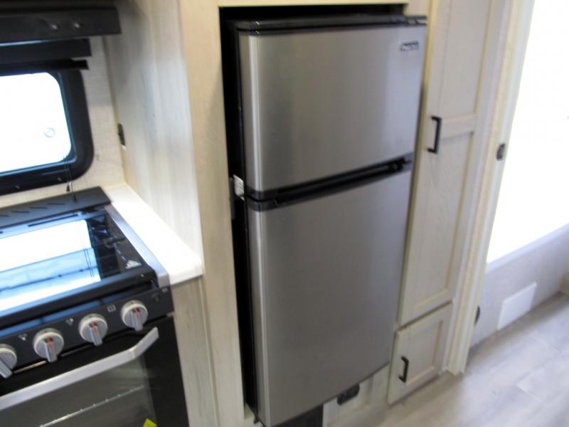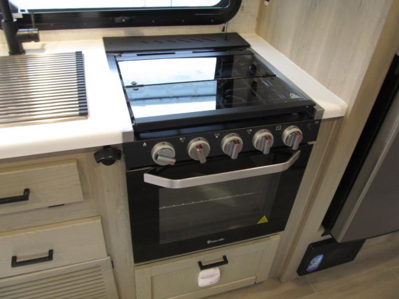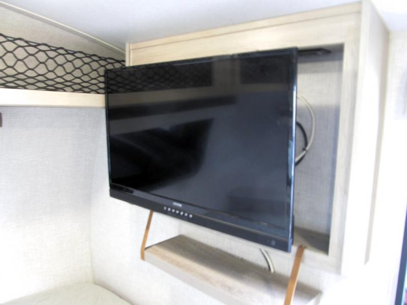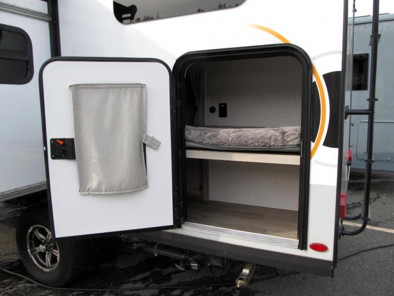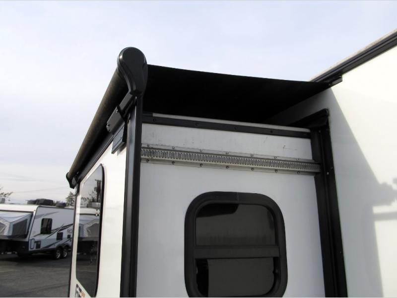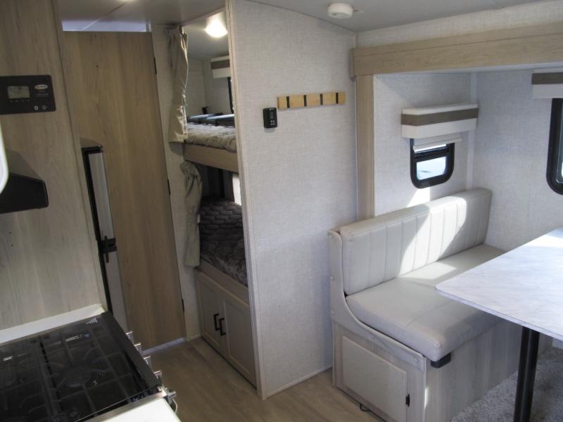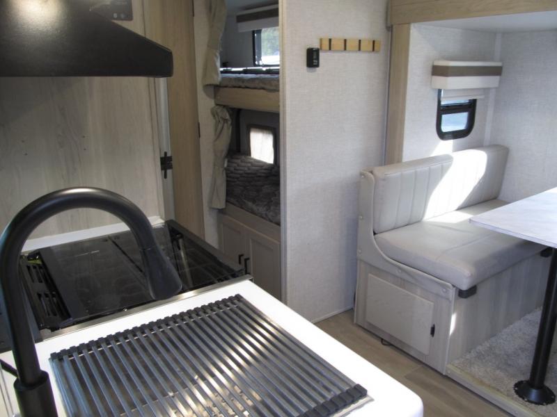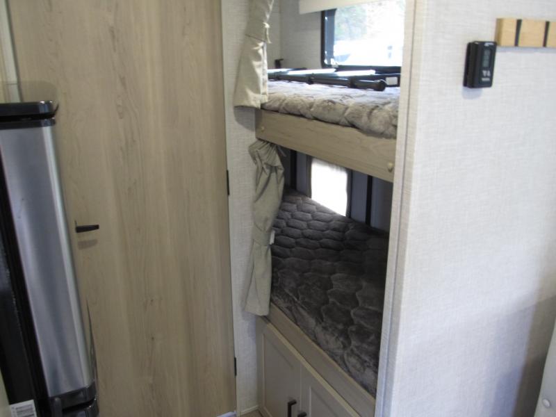 Your going to love camping with your family or friends in this largest bunk model in the GEO Pro lineup. The bunk beds will be perfect for little ones, while you take the front full-size bed. There is also a 44" booth dinette within the slide out for additional sleeping and seating space. The kitchen includes everything the chef will need to prepare meals each day, including a three burner cooktop, a microwave oven, and a 12V refrigerator for perishables. If the weather is nice, you may just find the chef outdoors cooking on the outside griddle under the 14' power awning. And check out the exterior bike door that will be perfect for bikes, luggage, or extra camp gear!