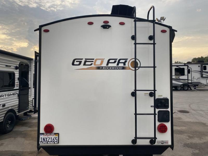 The Rockwood GEO Pro travel trailers and toy hauler by Forest River are ready for all your adventures. The interior and exterior Azdel construction, along with the vacuum laminated roof and walls provide a durable trailer, and the Dexter torsion axles with aluminum wheels make towing easier than ever. There are many convenient amenities, like the 13,500 BTU A/C, the Bluetooth system control panel, and the all-in-one Teton HD TV/WiFi/FM antenna with LTE prep. Each model includes frameless windows, fabric valances and roller shades, and a modern interior that will make you feel right at home. Everything you're looking for in your next RV is in a Rockwood GEO pro by Forest River!