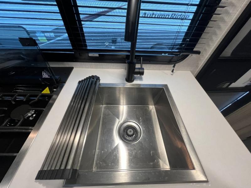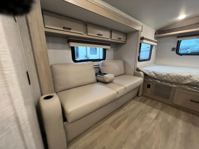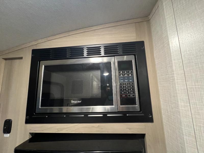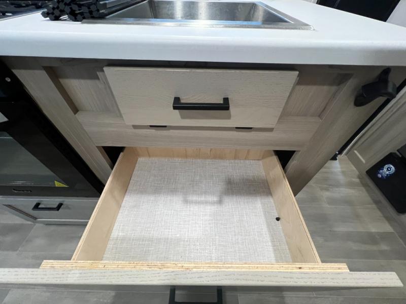 This is the perfect couple's trailer, so sneak away for a weekend in the woods. There is a 72" sofa slide out with a table that will be perfect for meals times, relaxing, or additional sleeping space if you have a guest or two. This model includes a 12V TV to keep you busy on those rainy days, and the queen bed will provide a great night's rest. This model also includes an outside griddle and an 11' power awning so you can enjoy those nice days outdoors!
