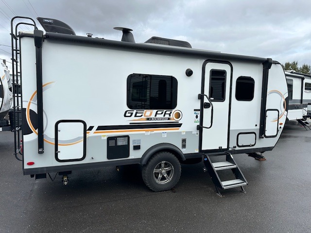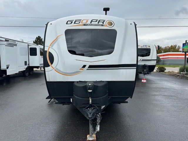 The Rockwood GEO Pro travel trailers and toy hauler by Forest River are ready for all your adventures. The interior and exterior Azdel construction, along with the vacuum laminated roof and walls provide a durable trailer, and the Dexter torsion axles with aluminum wheels make towing easier than ever. There are many convenient amenities, like the 13,500 BTU A/C, the Bluetooth system control panel, and the all-in-one Teton HD TV/WiFi/FM antenna with LTE prep. Each model includes frameless windows, fabric valances and roller shades, and a modern interior that will make you feel right at home. Everything you're looking for in your next RV is in a Rockwood GEO pro by Forest River!