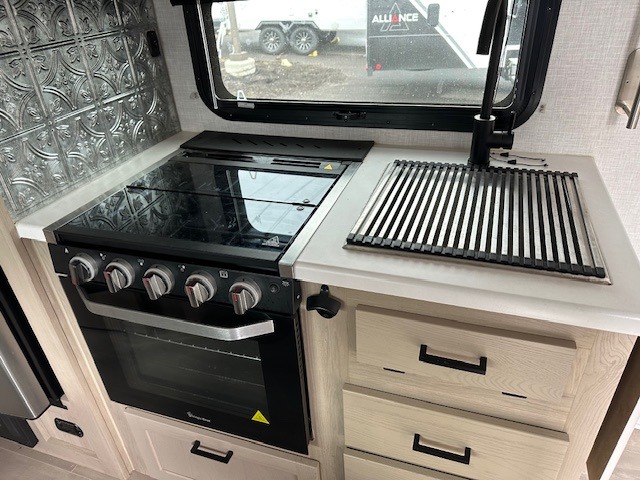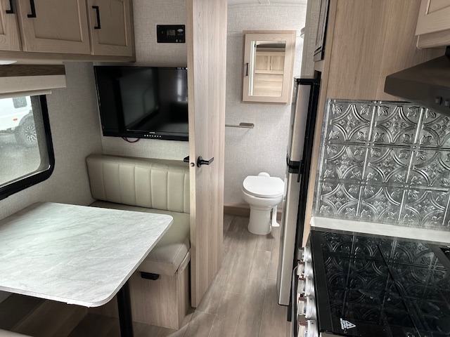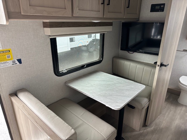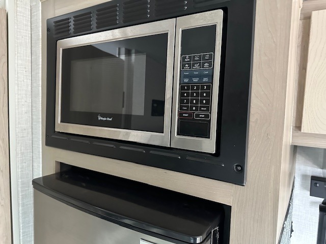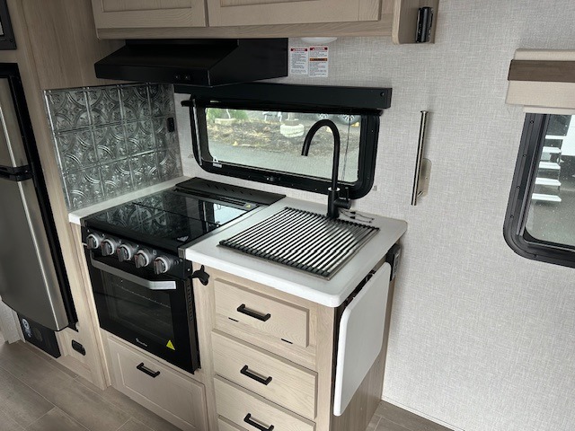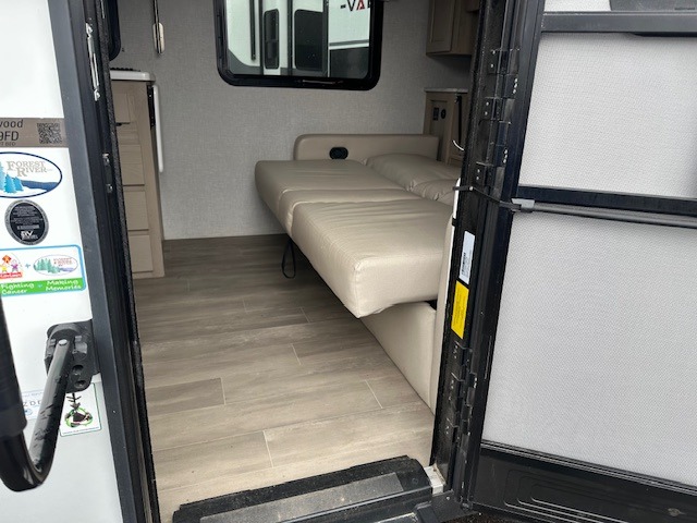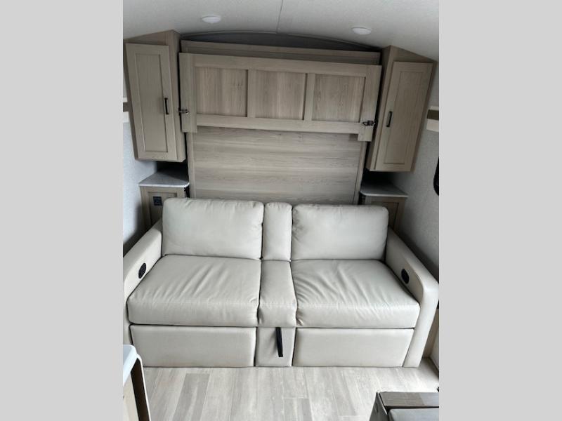 You will love how versatile this travel trailer is thanks to the Murphy bed up front. After you've had a great night's rest, just fold it up to relax on the 72" sofa. This will give the chef more space in the morning to prepare breakfast on the three burner cooktop. There is a 32" booth dinette to dine at, or you may just want to take your plate outdoors under the 13' power awning. The full rear bath includes a large linen closet to store clean towels and there is a Showermiser Water Saver you are sure to appreciate. This model also includes a pass-through storage, plus additional exterior storage so you can bring along hiking gear, water tubes, and fishing poles!