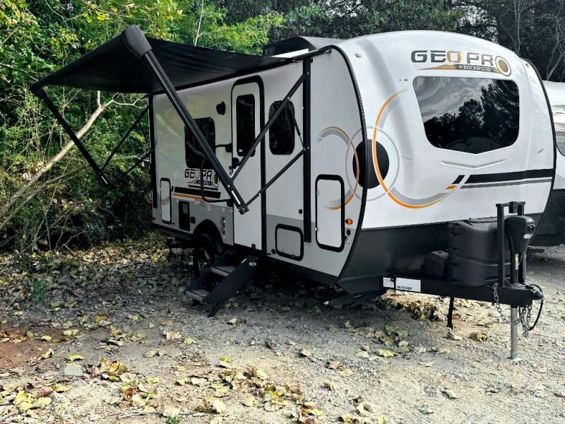 The Rockwood GEO Pro travel trailers and toy hauler by Forest River are ready for all your adventures. The interior and exterior Azdel construction, along with the vacuum laminated roof and walls provide a durable trailer, and the Dexter torsion axles with aluminum wheels make towing easier than ever. There are many convenient amenities, like the 13,500 BTU A/C, the Bluetooth system control panel, and the all-in-one Teton HD TV/WiFi/FM antenna with LTE prep. Each model includes frameless windows, fabric valances and roller shades, and a modern interior that will make you feel right at home. Everything you're looking for in your next RV is in a Rockwood GEO pro by Forest River!