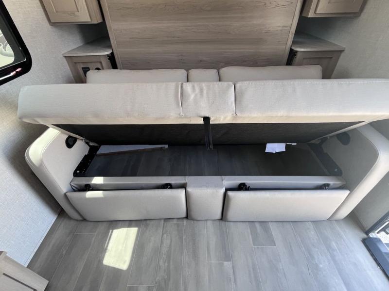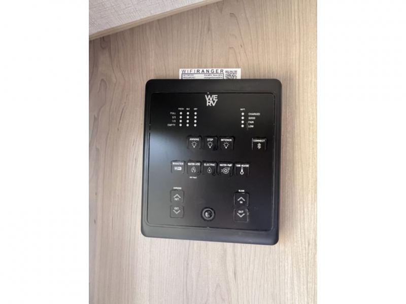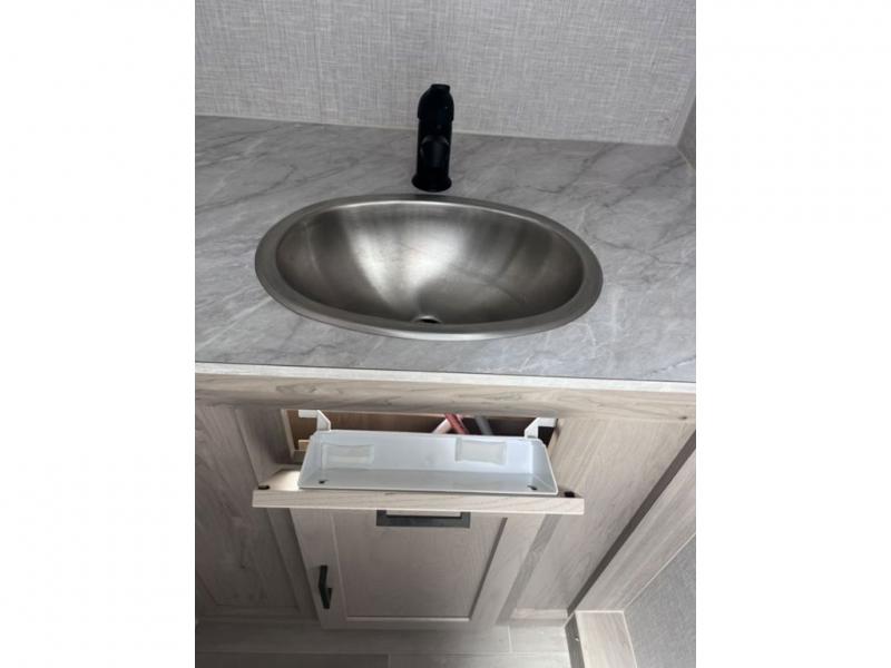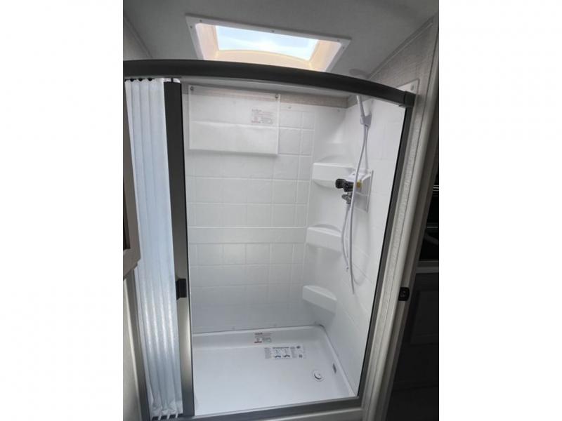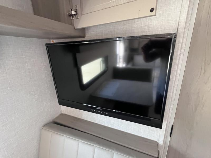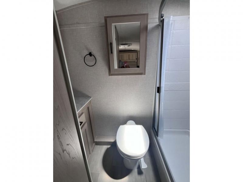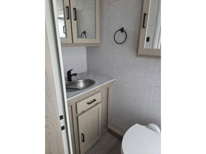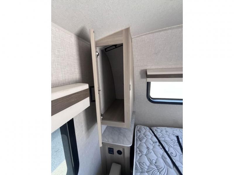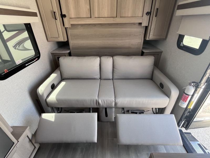 Comfortable sleeping space, convenient seating space, and a full rear bath makes this couple's trailer the one! You will love being able to relax on the sofa during the day, and sleep on the Murphy bed at night. There is a single slide out that will provide you more space to move around or cook meals, and the full bath includes a large shower so you won't feel cramped. If it's a rainy day you can watch movies on the 12V TV, and if it's nice out, sit under the 14' power awning and cook lunch on the outside griddle. The possibilities are endless with this couple's trailer!