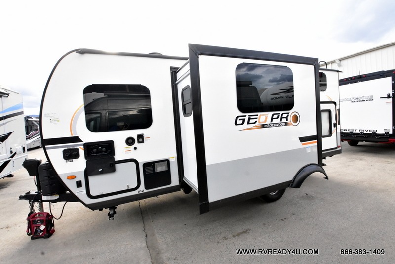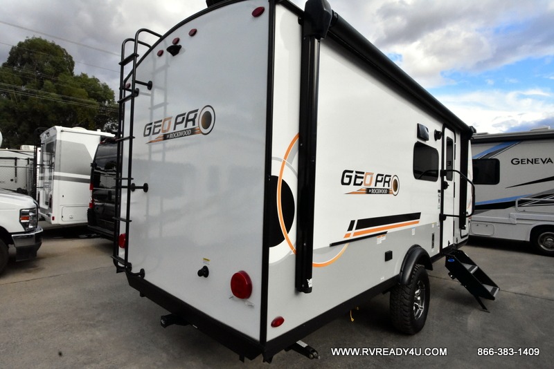 The Rockwood GEO Pro travel trailers and toy hauler by Forest River are ready for all your adventures. The interior and exterior Azdel construction, along with the vacuum laminated roof and walls provide a durable trailer, and the Dexter torsion axles with aluminum wheels make towing easier than ever. There are many convenient amenities, like the 13,500 BTU A/C, the Bluetooth system control panel, and the all-in-one Teton HD TV/WiFi/FM antenna with LTE prep. Each model includes frameless windows, fabric valances and roller shades, and a modern interior that will make you feel right at home. Everything you're looking for in your next RV is in a Rockwood GEO pro by Forest River!