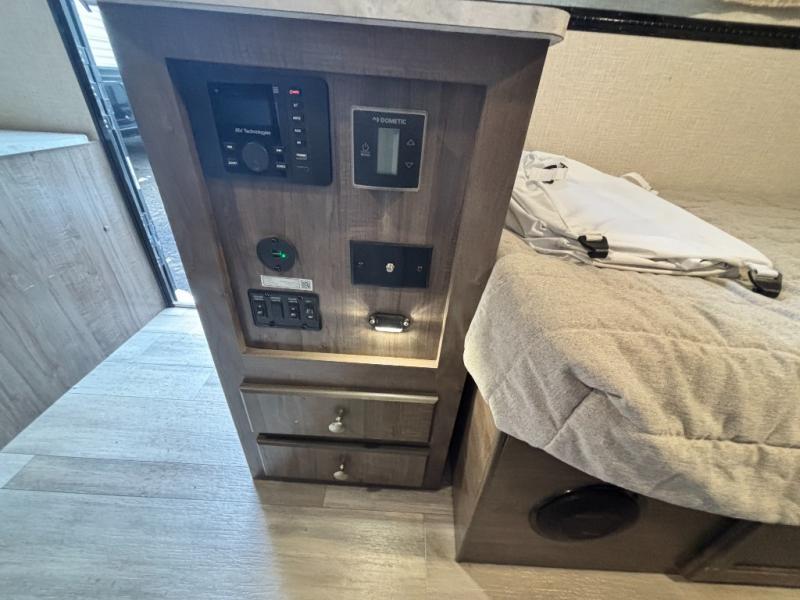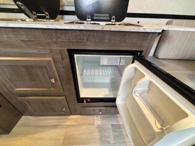This versatile camper is perfect for those looking for an easy-to-tow RV for fun adventures. The large dormer window provides more space to relax and dine at the booth dinette, and there is a convenient toilet so you don't have to use the camp's facilities in the middle of the night. The two twin beds come with a king bed insert so you'll have a comfortable and spacious bed to sleep on, and the Cool Cat A/C is close by for comfort. This model also includes a microwave oven with a cabinet, a 1.7 cu. ft. 12 volt refrigerator, and exterior storage for your gear!