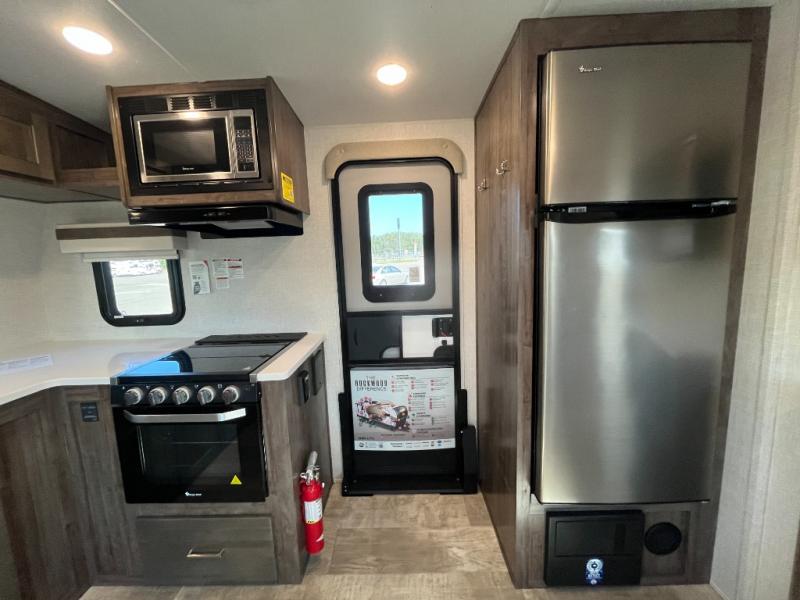 Each Rockwood Mini Lite travel trailer by Forest River is constructed with a fully laminated one-piece walkable roof, sleek frameless windows, and a six-sided full aluminum frame for strength and durability. The 12V thermostatically controlled heated tanks, plus radiant foil in the underbelly, front caps, and slide out floors will allow you to camp well into the colder months, and the 200W roof solar panel will be perfect for a little off-gridding. Each model includes solid surface kitchen countertops, solid wood cabinet doors, night roller shades, plus many more interior features. Having a Teton all in one Wi-Fi booster/LTE prep and antenna on board will allow you to get some work done if it's needed, and the power tongue jack provides hassle-free set up, so you can enjoy more time relaxing!