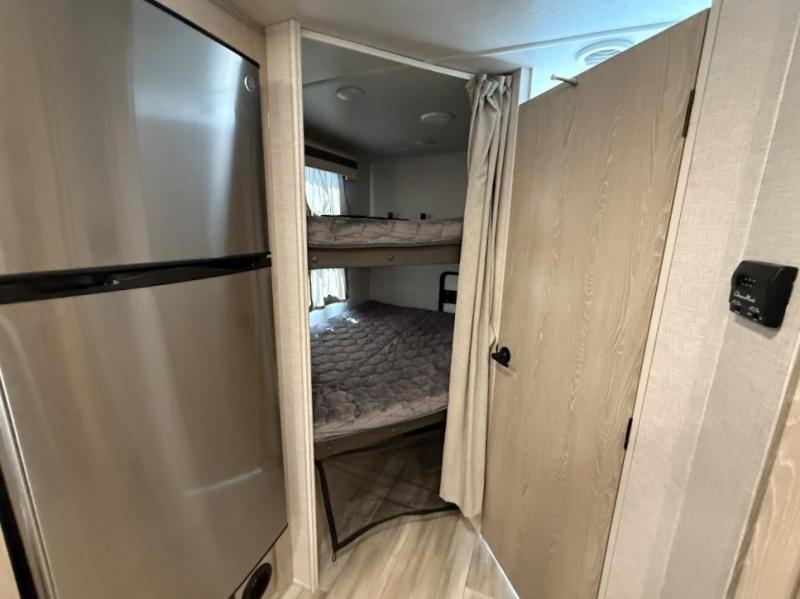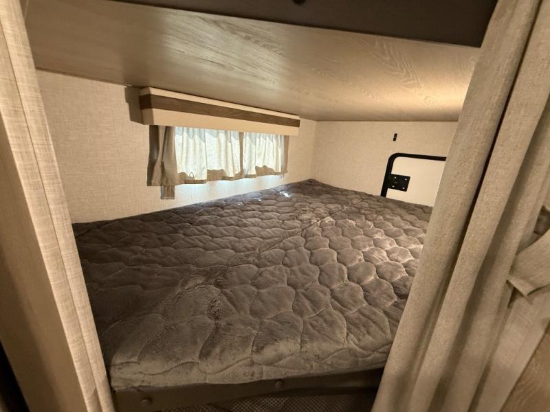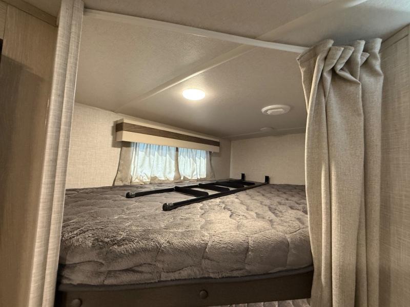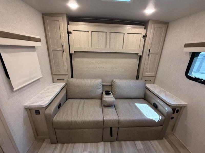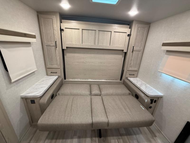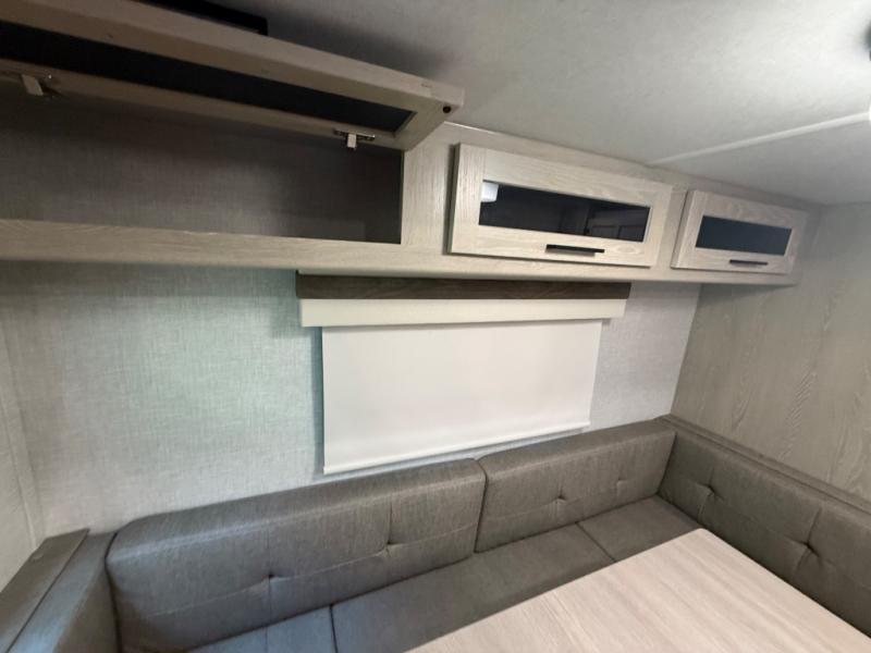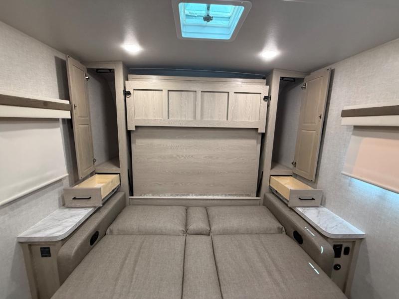 Finally, a lightweight travel trailer with double-size bunks for the kids or your guests! You'll find the versatile Murphy bed up front will be super convenient when you need more space to move around, and the 72" sofa will provide comfy seating space when the bed is put up. This model also includes a U-shaped dinette slide perfect to dine around, play games, and sleep additional guests. An LED TV in the main living area will allow you to watch your favorite shows in the evenings, or you may just find yourselves outdoors under the 18' power awning with LED lights. And check out the pass-through storage, plus additional exterior storage for your hiking gear!