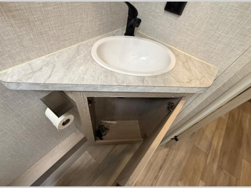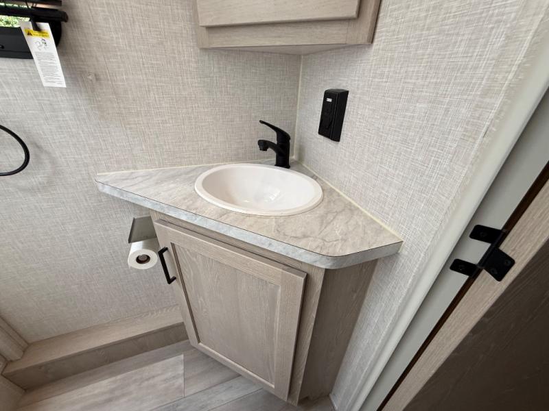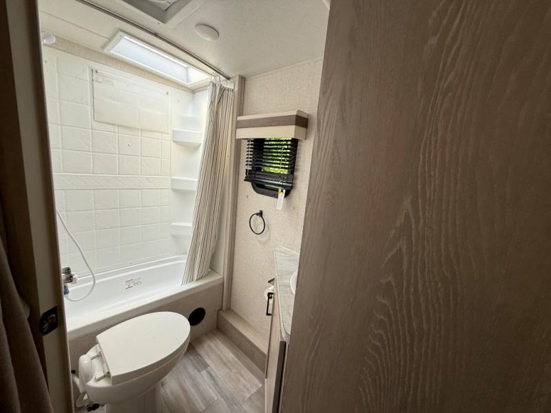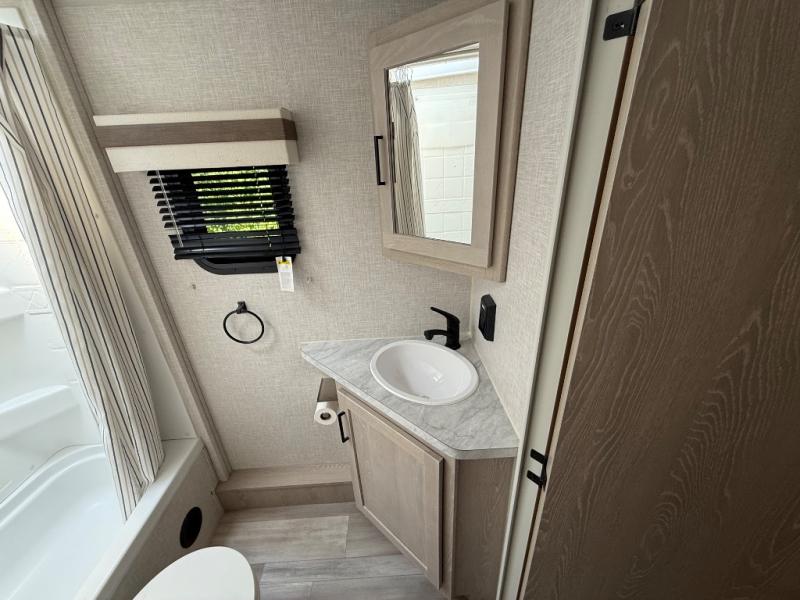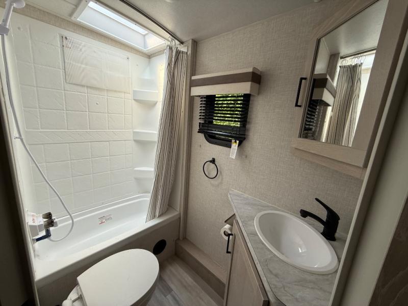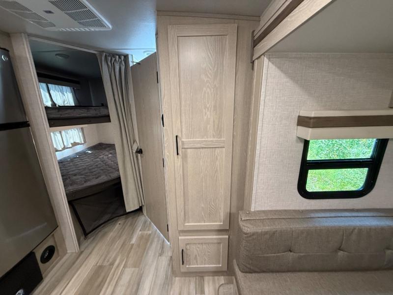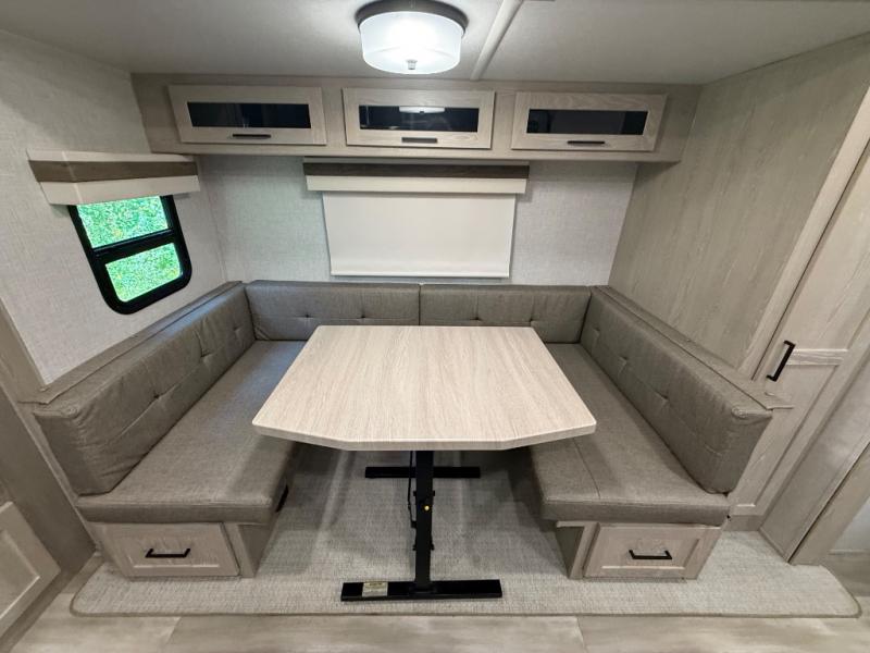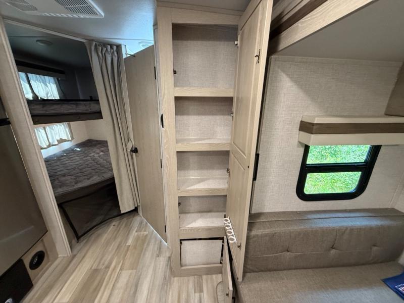 Finally, a lightweight travel trailer with double-size bunks for the kids or your guests! You'll find the versatile Murphy bed up front will be super convenient when you need more space to move around, and the 72" sofa will provide comfy seating space when the bed is put up. This model also includes a U-shaped dinette slide perfect to dine around, play games, and sleep additional guests. An LED TV in the main living area will allow you to watch your favorite shows in the evenings, or you may just find yourselves outdoors under the 18' power awning with LED lights. And check out the pass-through storage, plus additional exterior storage for your hiking gear!