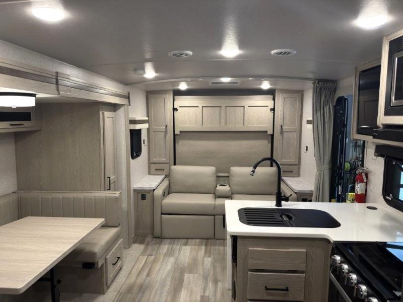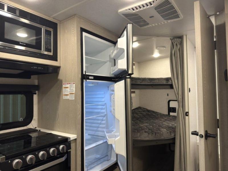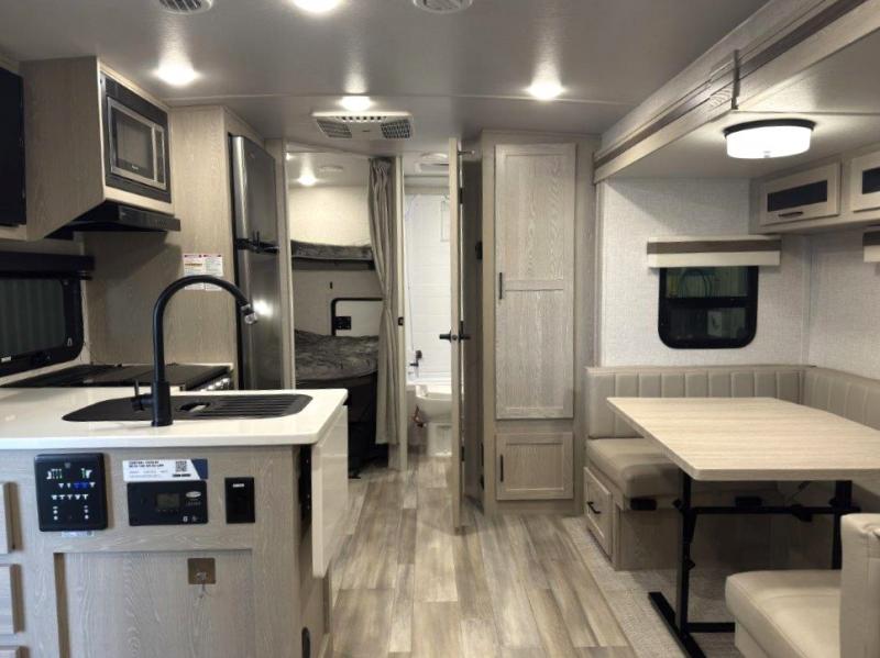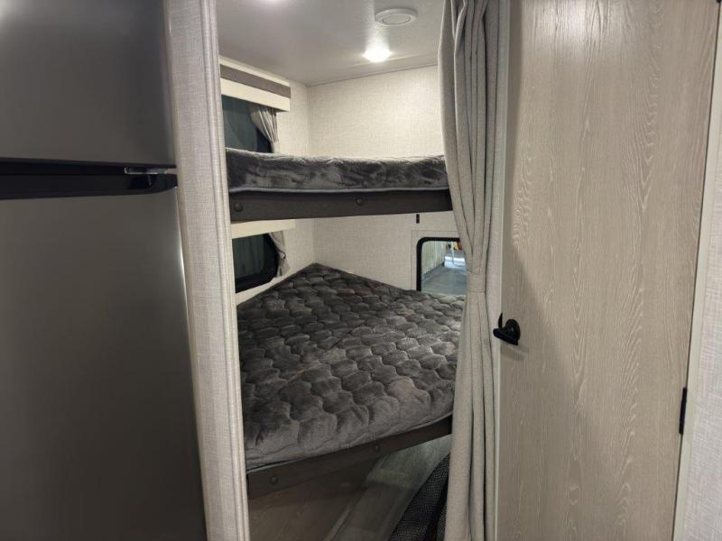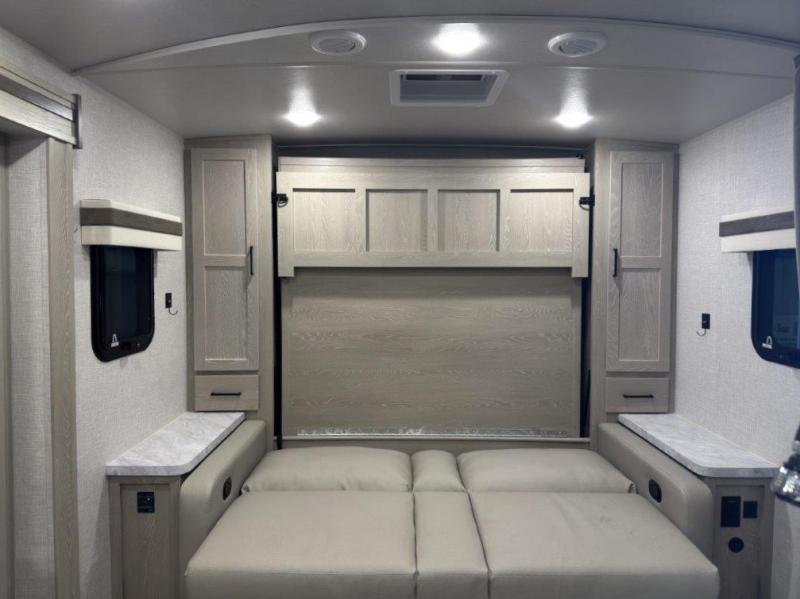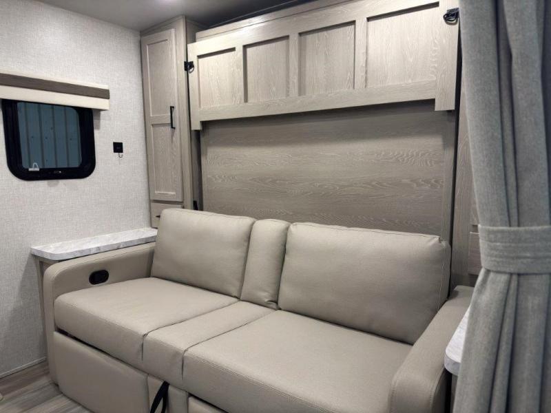 Finally, a lightweight travel trailer with double-size bunks for the kids or your guests! You'll find the versatile Murphy bed up front will be super convenient when you need more space to move around, and the 72" sofa will provide comfy seating space when the bed is put up. This model also includes a U-shaped dinette slide perfect to dine around, play games, and sleep additional guests. An LED TV in the main living area will allow you to watch your favorite shows in the evenings, or you may just find yourselves outdoors under the 18' power awning with LED lights. And check out the pass-through storage, plus additional exterior storage for your hiking gear!