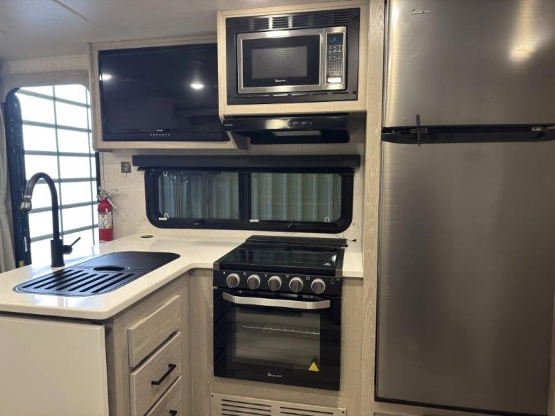 Each Rockwood Mini Lite travel trailer by Forest River is constructed with a fully laminated one-piece walkable roof, sleek frameless windows, and a six-sided full aluminum frame for strength and durability. The 12V thermostatically controlled heated tanks, plus radiant foil in the underbelly, front caps, and slide out floors will allow you to camp well into the colder months, and the 200W roof solar panel will be perfect for a little off-gridding. Each model includes solid surface kitchen countertops, solid wood cabinet doors, night roller shades, plus many more interior features. Having a Teton all in one Wi-Fi booster/LTE prep and antenna on board will allow you to get some work done if it's needed, and the power tongue jack provides hassle-free set up, so you can enjoy more time relaxing!